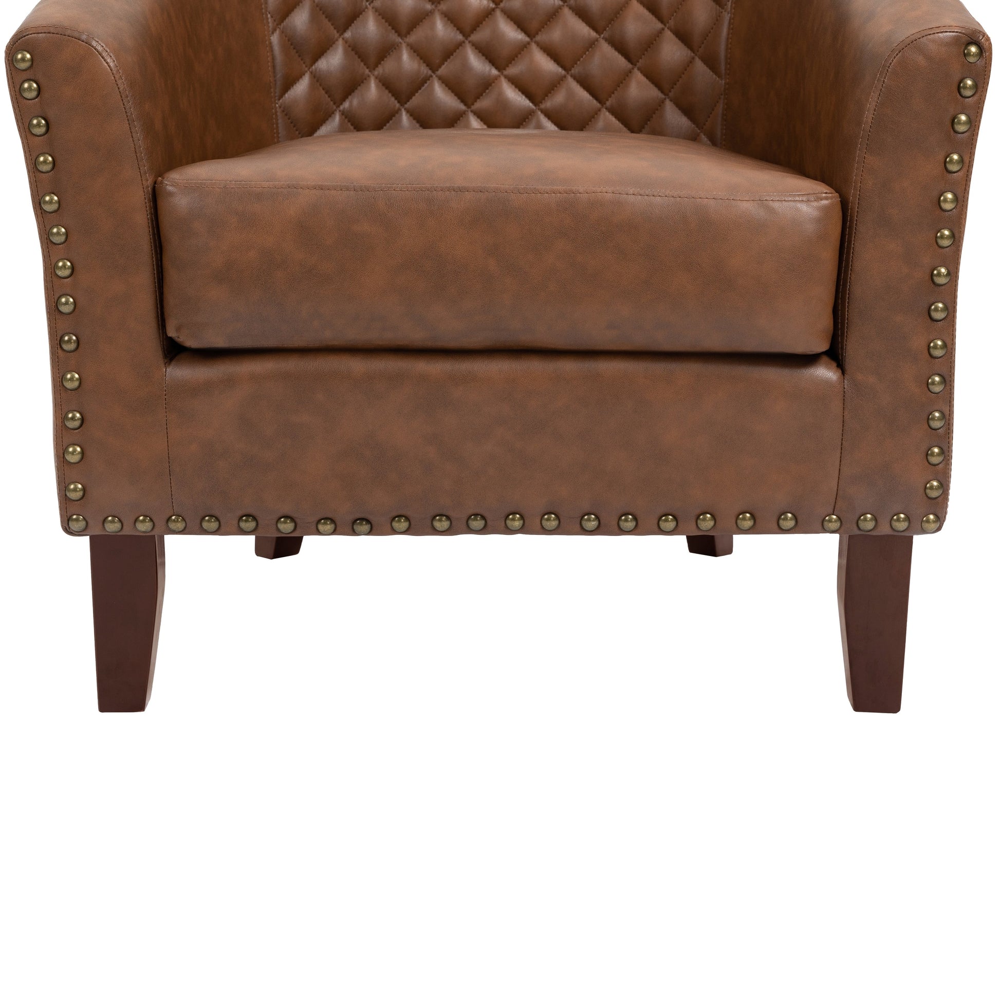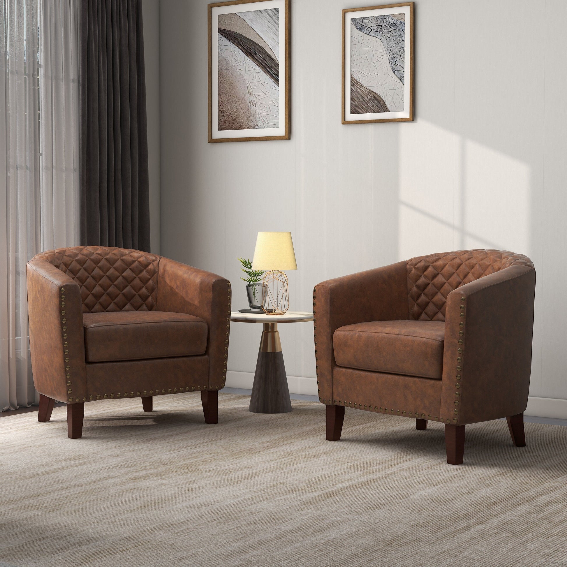 2 Set 29 W Vegan Leather Barrel Accent Chairs with Nailheads Trim