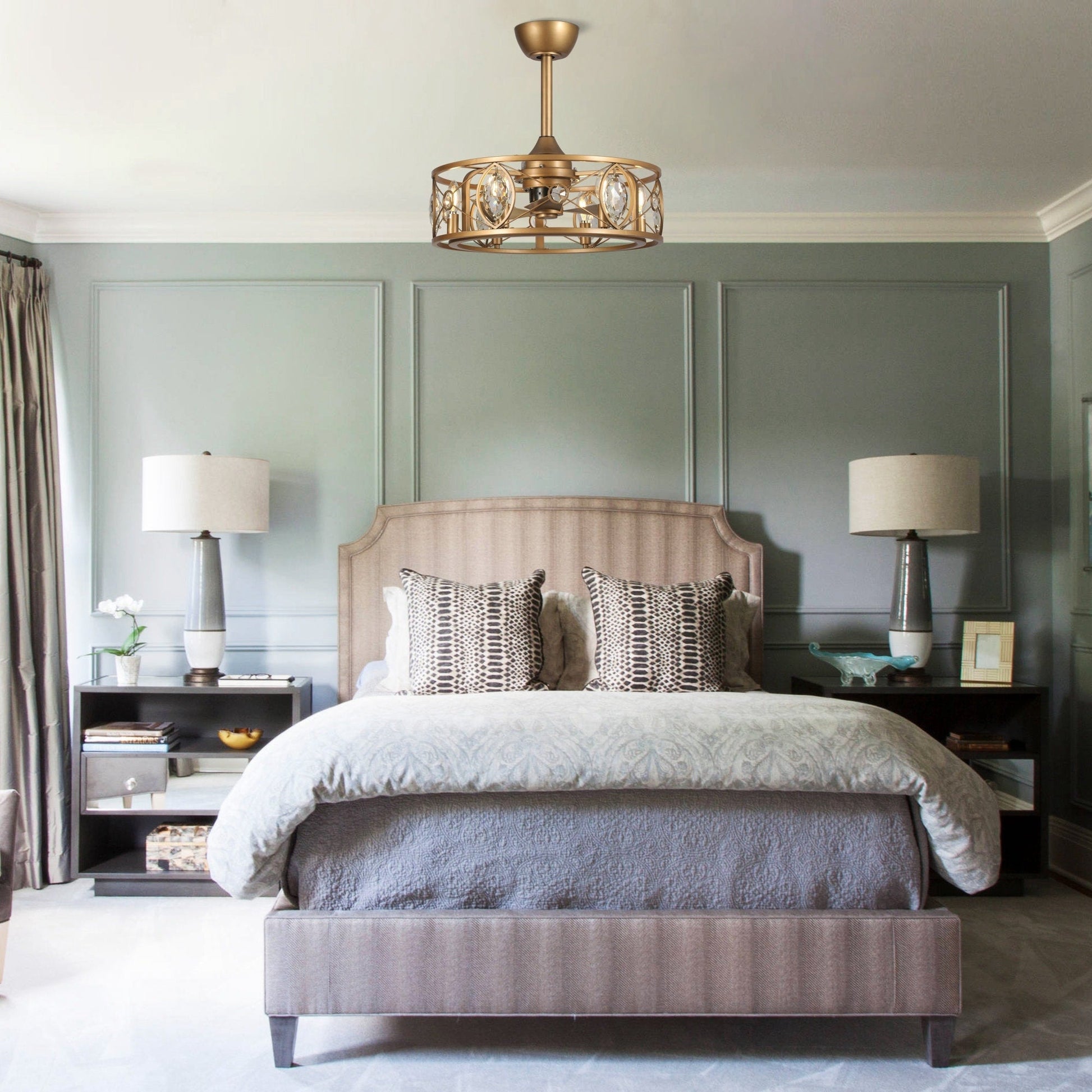 Brighten up and breezy a room with the warm brass finish on this sparkling small crystal ceiling fan is great for providing ambient illumination and cooling down. From the Parrot Uncle comes a 22' ceiling fan that combines elements of modern, farmhouse, and industrial design. It comes in a brass finish frame surrounded by big crystals, which is paired with three brass finish molded ABS blades to add a splash of modern elegance. Combining elements of a ceiling fan and a chandelier, this piece also comes with six LED bulbs (not included) light kits, spread out within the interior of the chandelier fan. Use the included 3-speed full-function remote control to easily set both light and air movement to your standards.