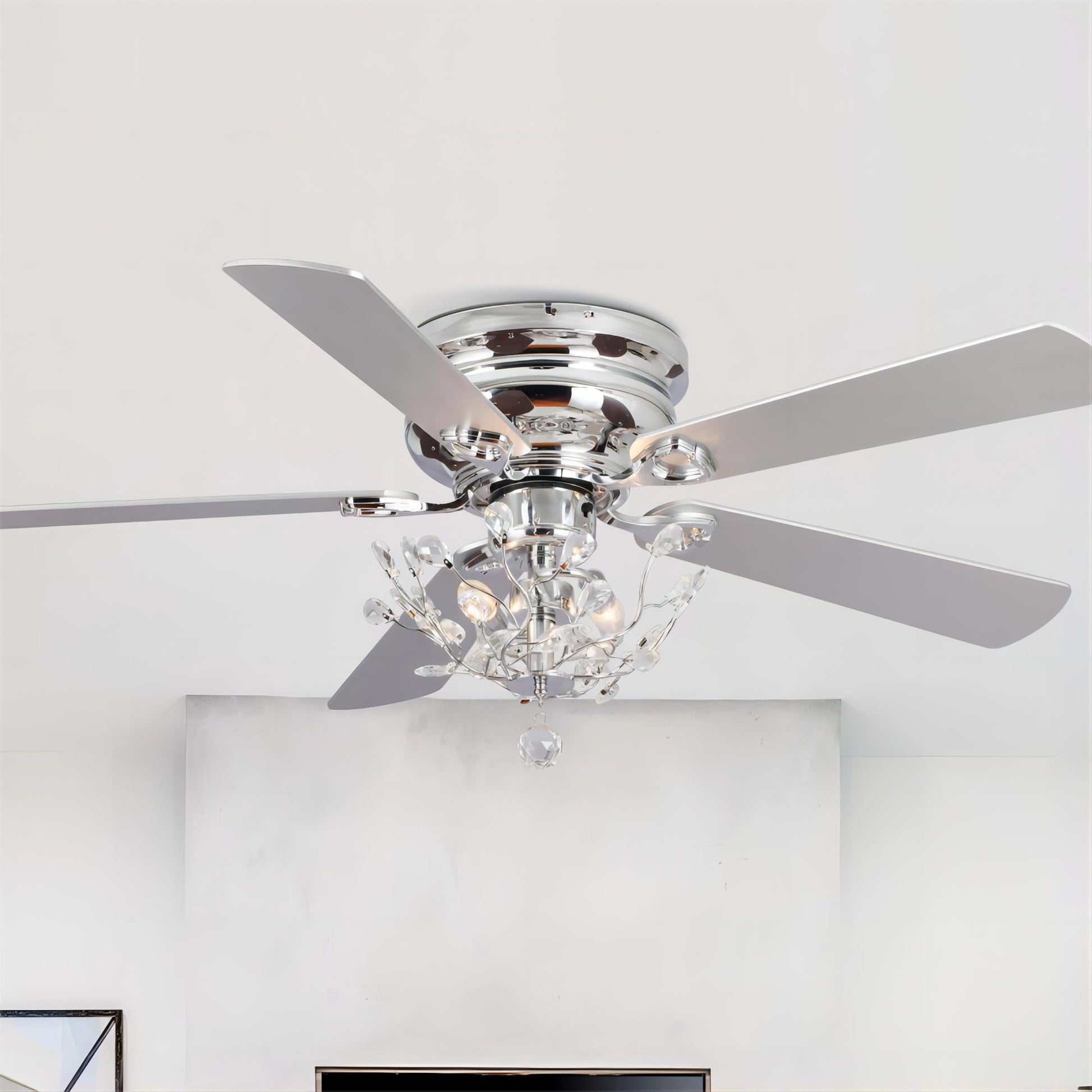 48 Modern Reversible 5-Blade Crystal Flush Mount Ceiling Fan with Remote