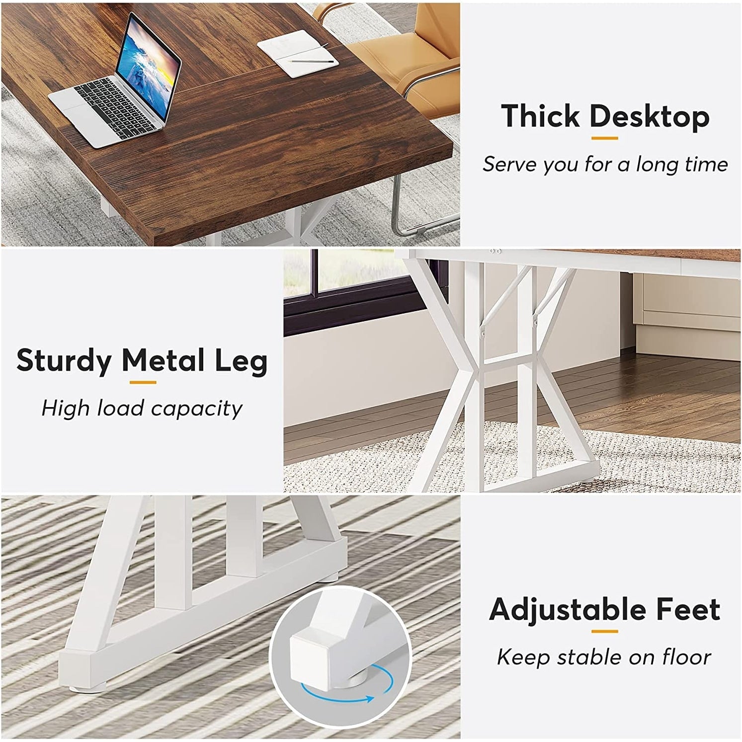 [Multi-purpose Design]: Our versatile desk can work great as a computer desk, executive desk, conference table, or dining table to meet all your needs. The compact but stylish design makes this desk fits well with any home decor and maximizes your space.