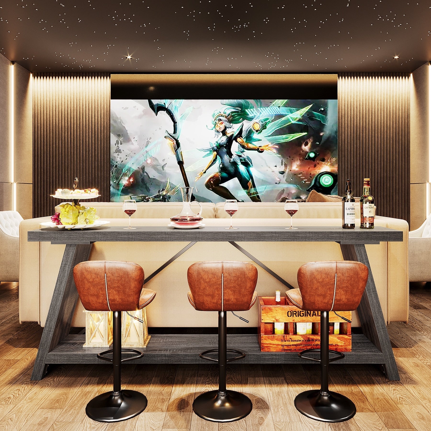 70.9 Inches Long Rustic Wood Console Sofa Table with Storage Shelf