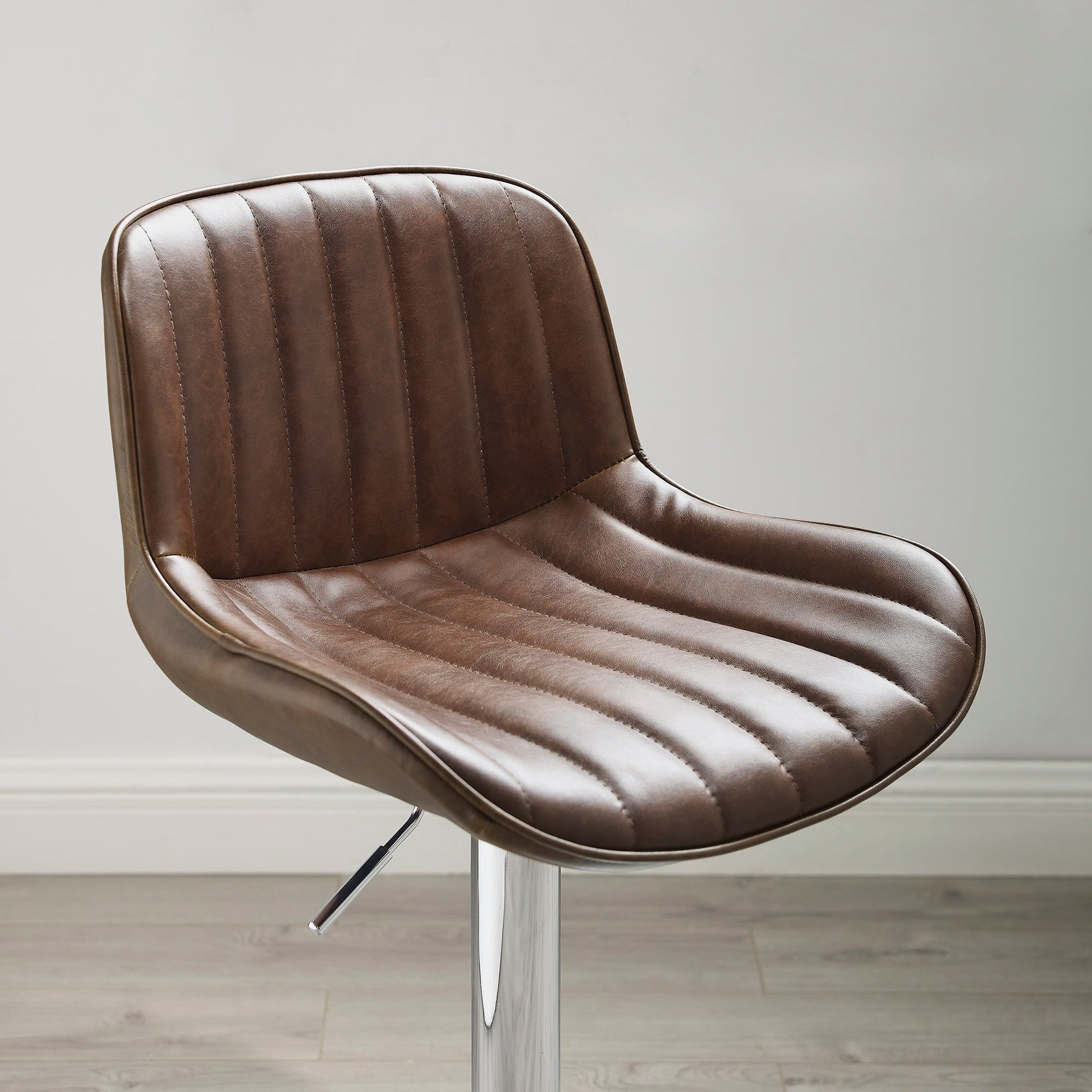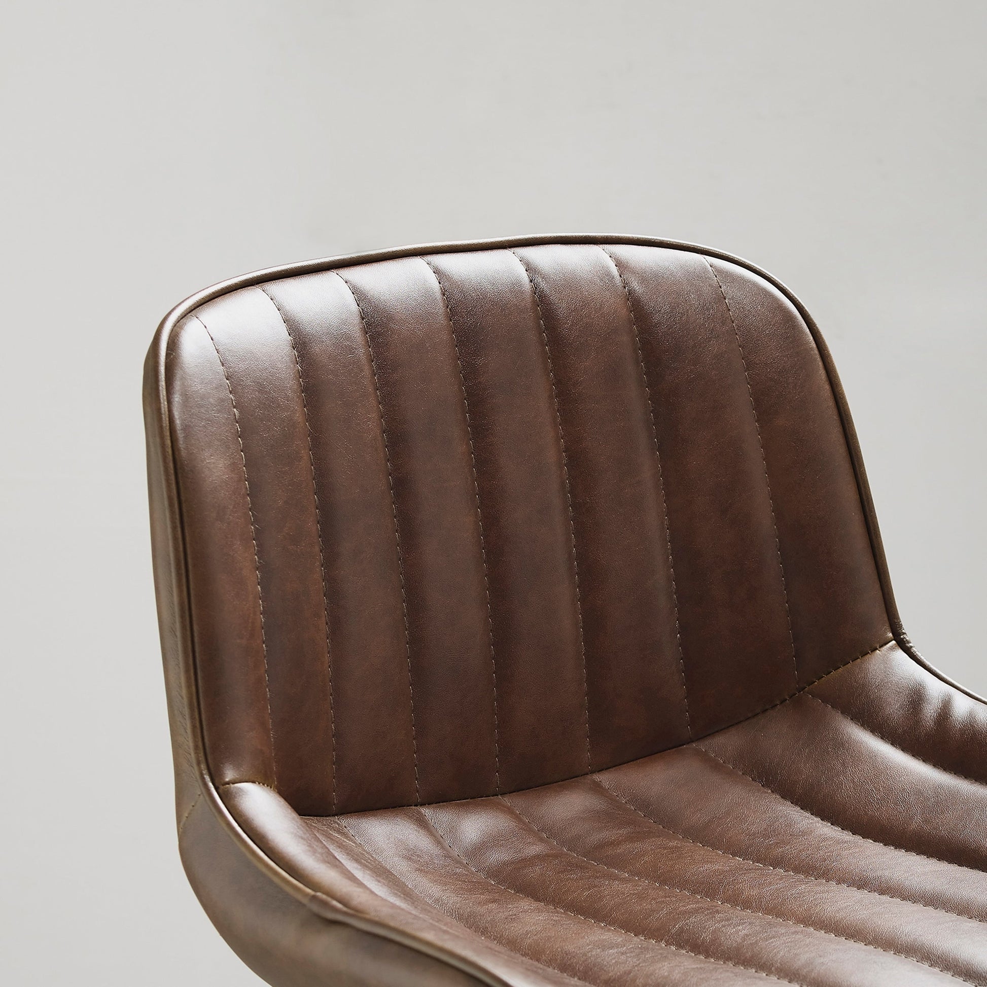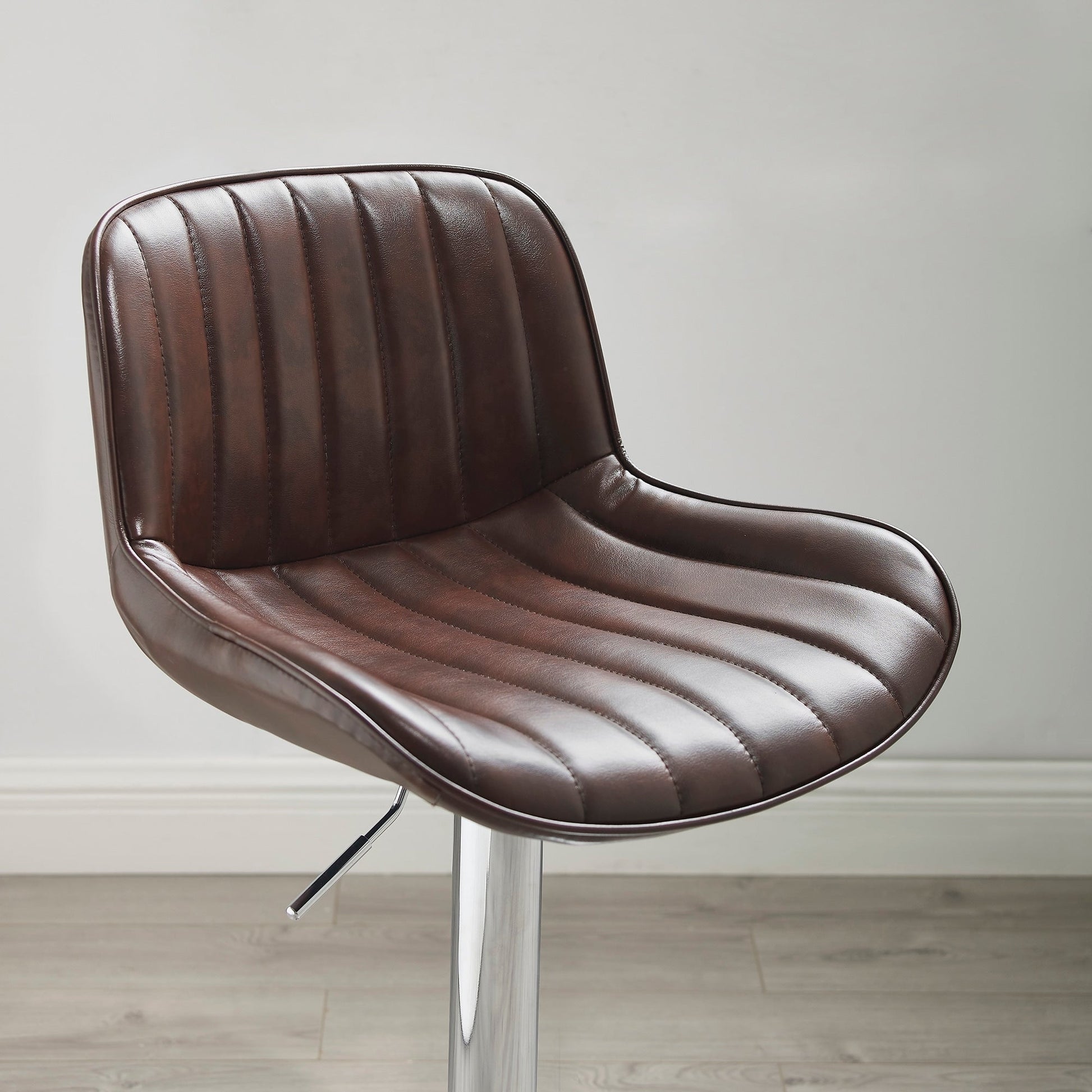 Infuse a touch of mid-century allure into your bar or kitchen counter with Art Leon’s Adjustable Swivel Barstool Set. These elegant bar stools showcase a contoured faux leather seat, complemented by a low back and classic striated quilting available in a spectrum of colors. The pedestal base, offered in sophisticated black or sleek chrome, features advanced gas-lift technology allowing for effortless height adjustment, while incorporating a convenient built-in footrest. With the ability to swivel a full 360 degrees and a robust metal frame, these armless stools are ideally suited for entertaining guests in style.