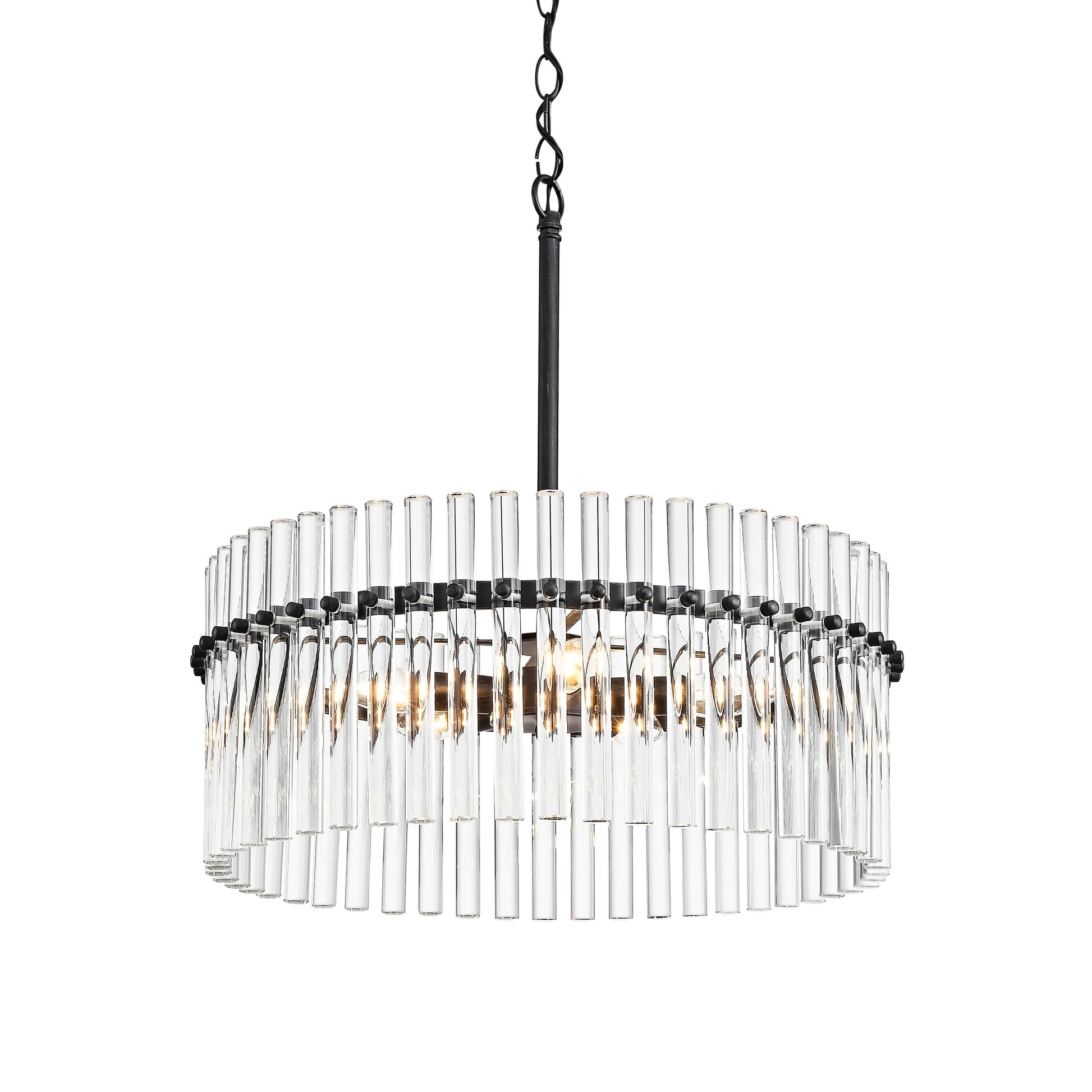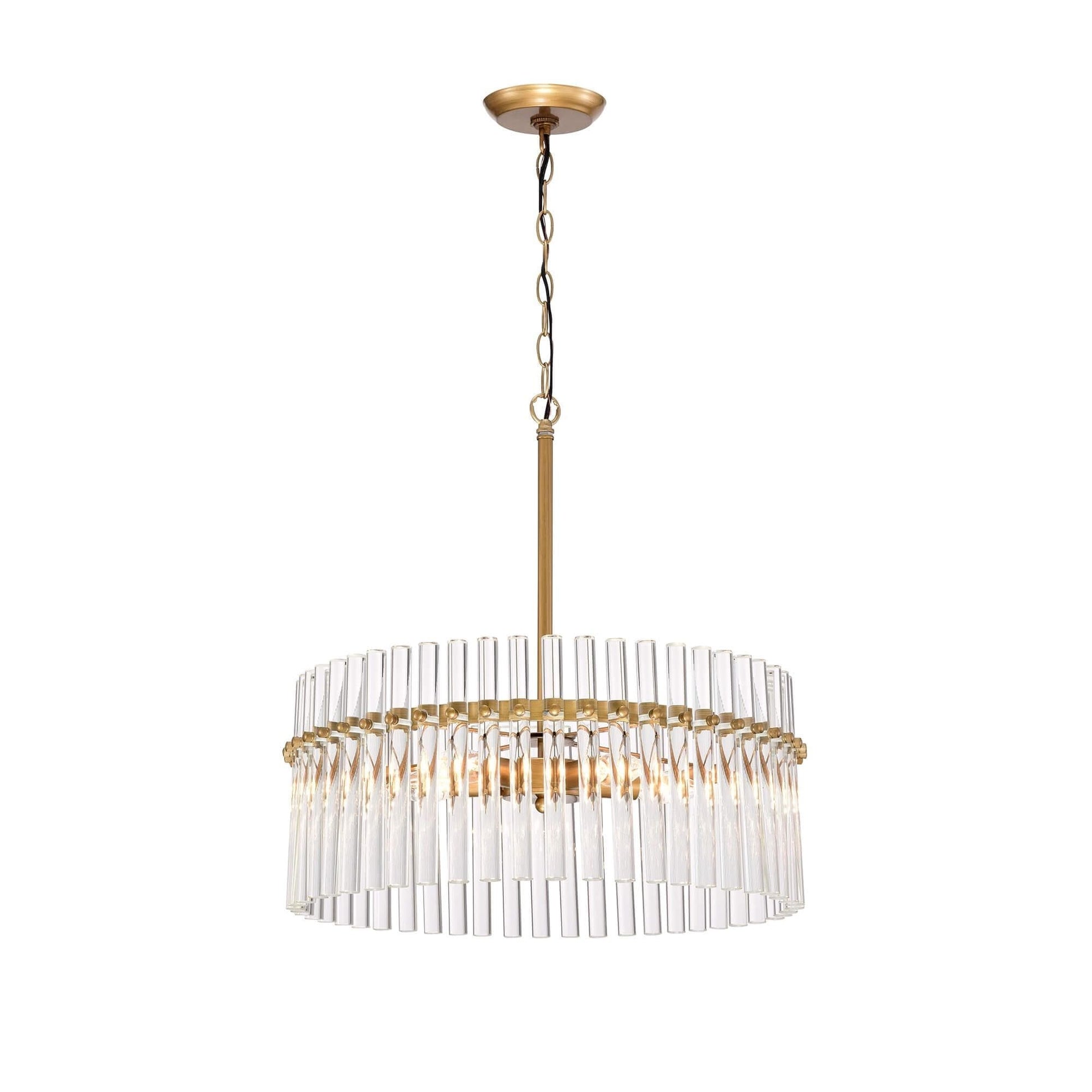 Create a chic and luxurious ambiance in your home with the Casandra 5-light Crystal Chandelier. This contemporary/modern style chandelier is crafted from iron and cylindrical clear glass crystal bars that refract light beautifully. The chandelier features multi-directional lighting and adjustable hang height, making it a versatile and ideal choice for any space.