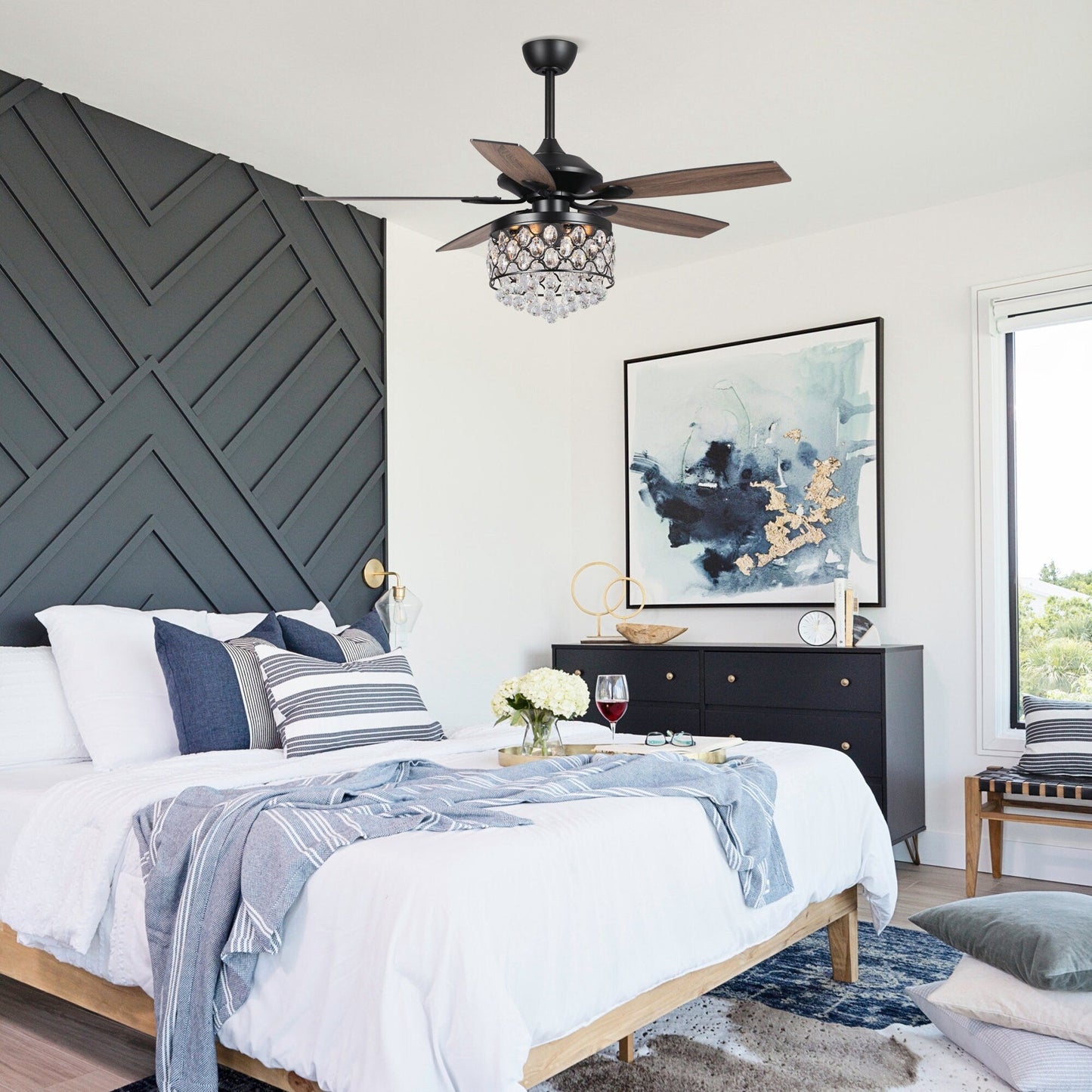 - Modern fandelier ceiling fan with shimmering crystal embellishments