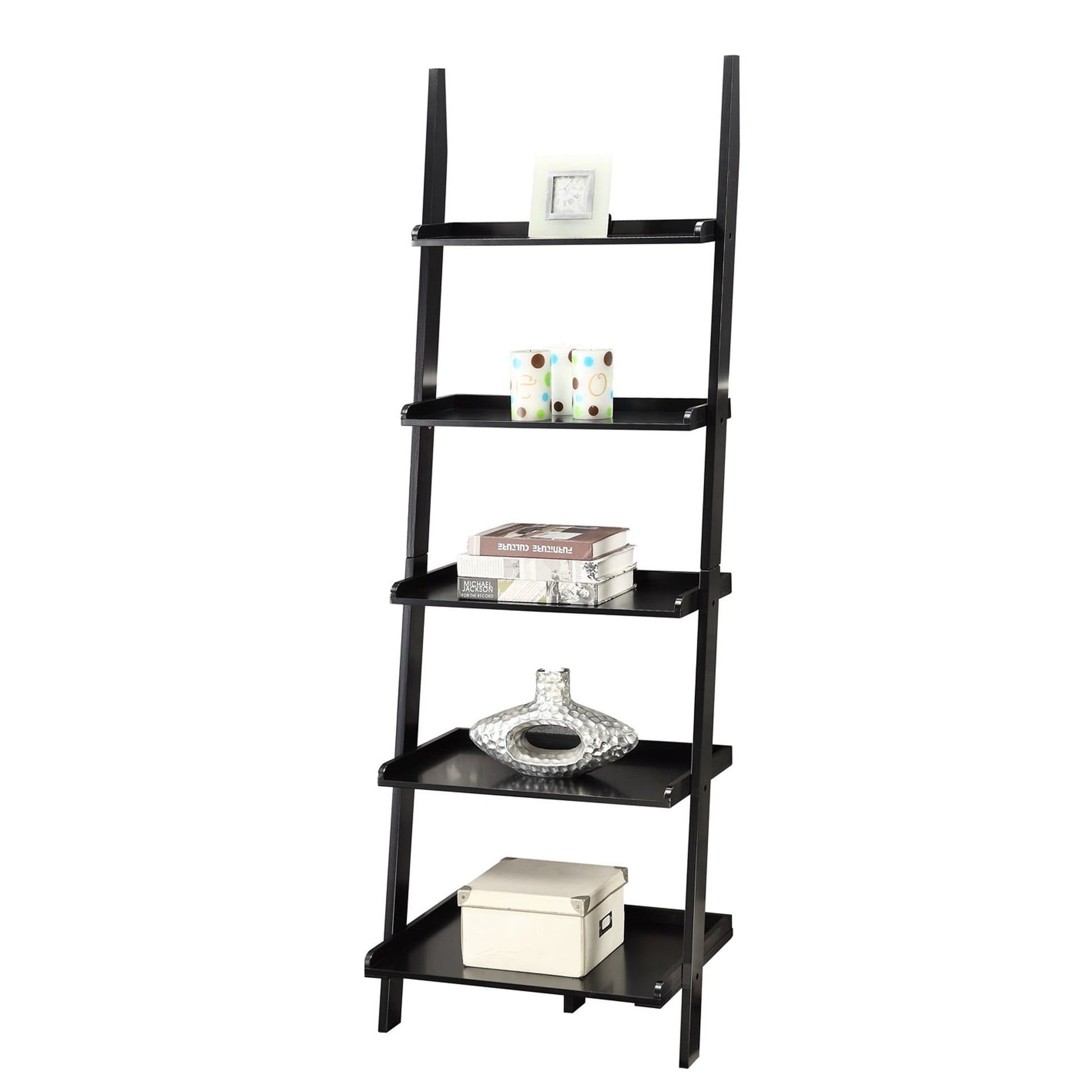 The American Heritage Bookshelf Ladder by Convenience Concepts makes for the perfect display or storage unit in any room of your home. Available in multiple finishes, this piece features 5 tiers of spacious shelving for collectibles, books, and even storage. Versatility is endless thanks to its unique design. This bookshelf ladder can be placed in the living room, office, or any room that needs additional display space. Crafted with solid pine, birch veneer, and MDF, this sturdy unit was built to last. Coordinate with additional pieces from the American Heritage Collection, each sold separately.