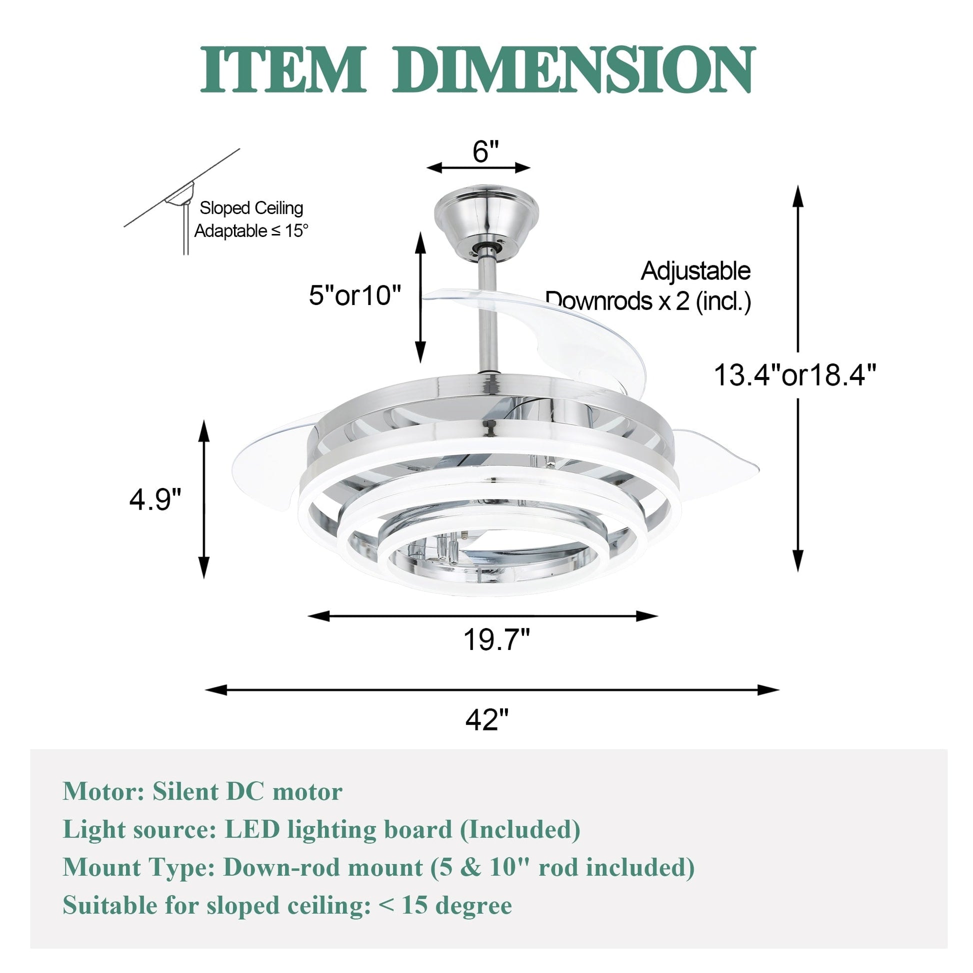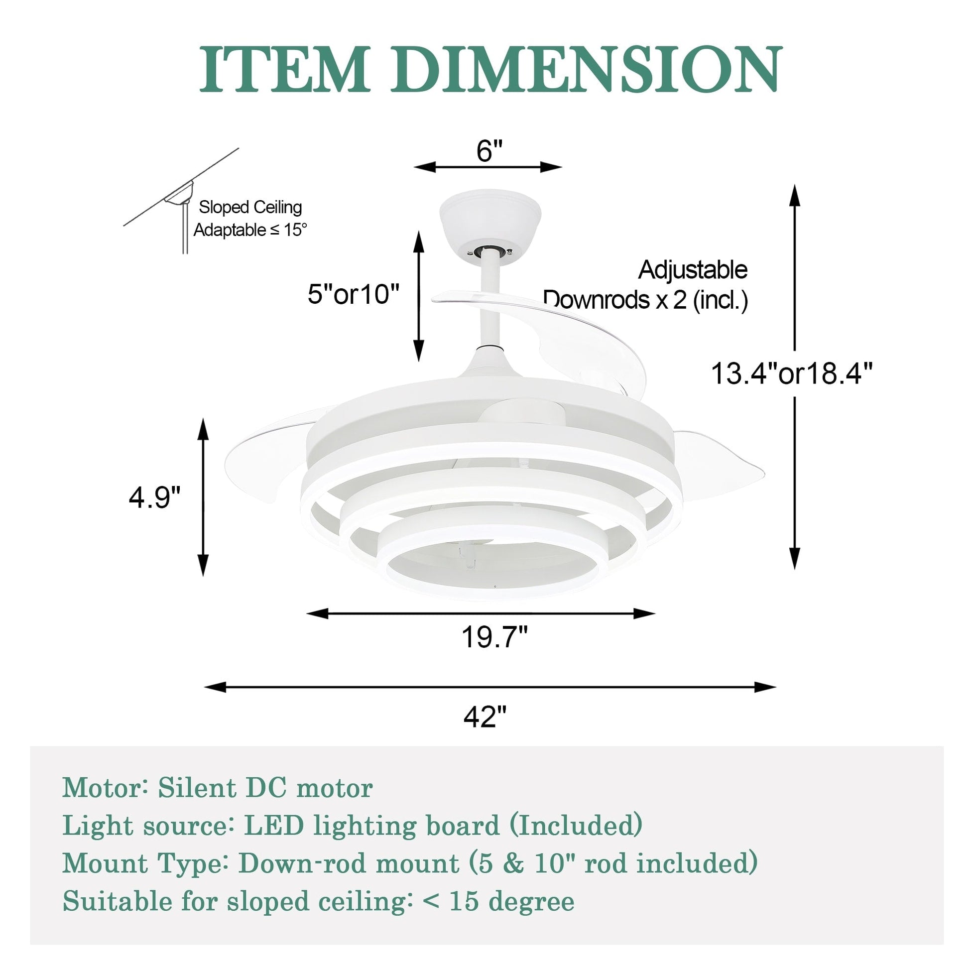 - Sloped Ceiling Adaptable: up to 15 degrees