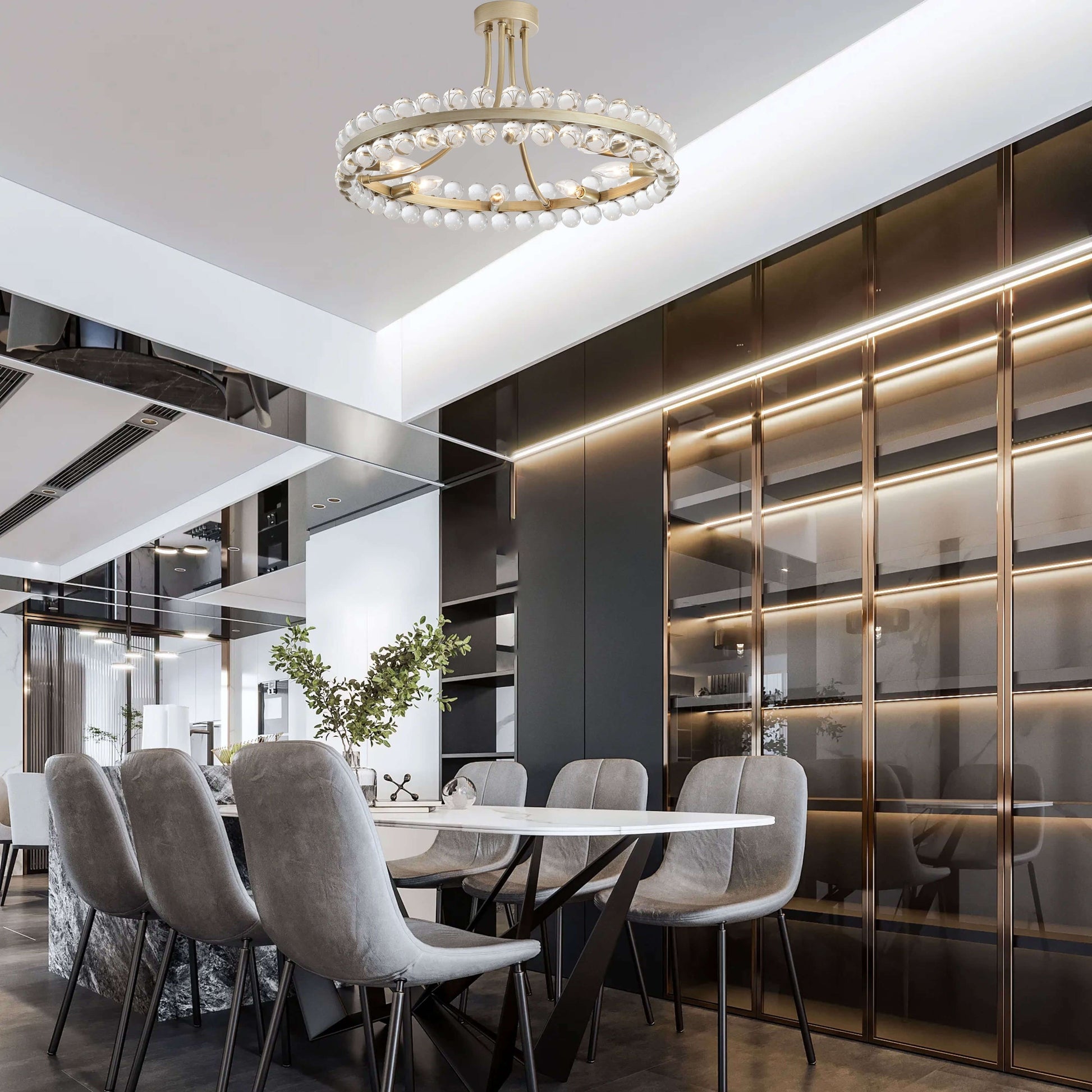 Illuminate your home with the Elvira 8-Light Wagon Wheel Crystal Semi-Flush Mount. This exquisite chandelier features an iron ring adorned with ball crystals, creating a captivating and sophisticated look.Designed for versatility, the semi-flush mount style is perfect for lower ceilings and is compatible with dimmer switches. It requires eight (8) 40-watt (E12) bulbs (not included), suitable for incandescent, halogen, or LED lighting.Enhance any space—from dining rooms to entryways—with the Elvira chandelier, a beautiful fusion of timeless elegance and modern style!