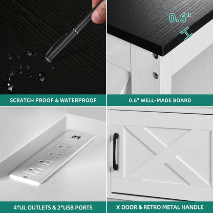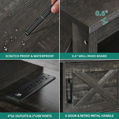 Farmhouse TV Stand for up to 65 TV with Doors and Open Shelves Media Console Power Outlet