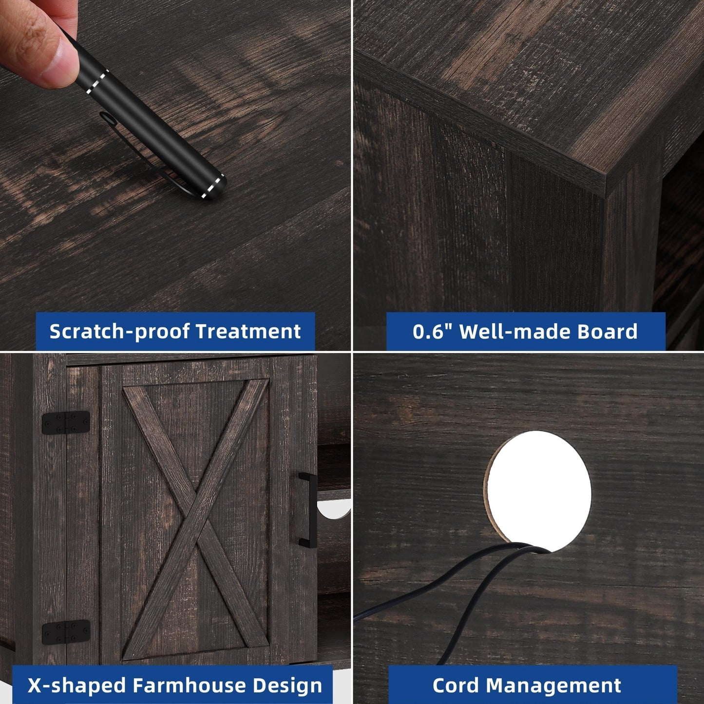 - 3. Enjoy Years of Use: Made of engineered wood covered by water-resistant scratch-proof finish, the durable wooden TV stand allows for years of enjoyment