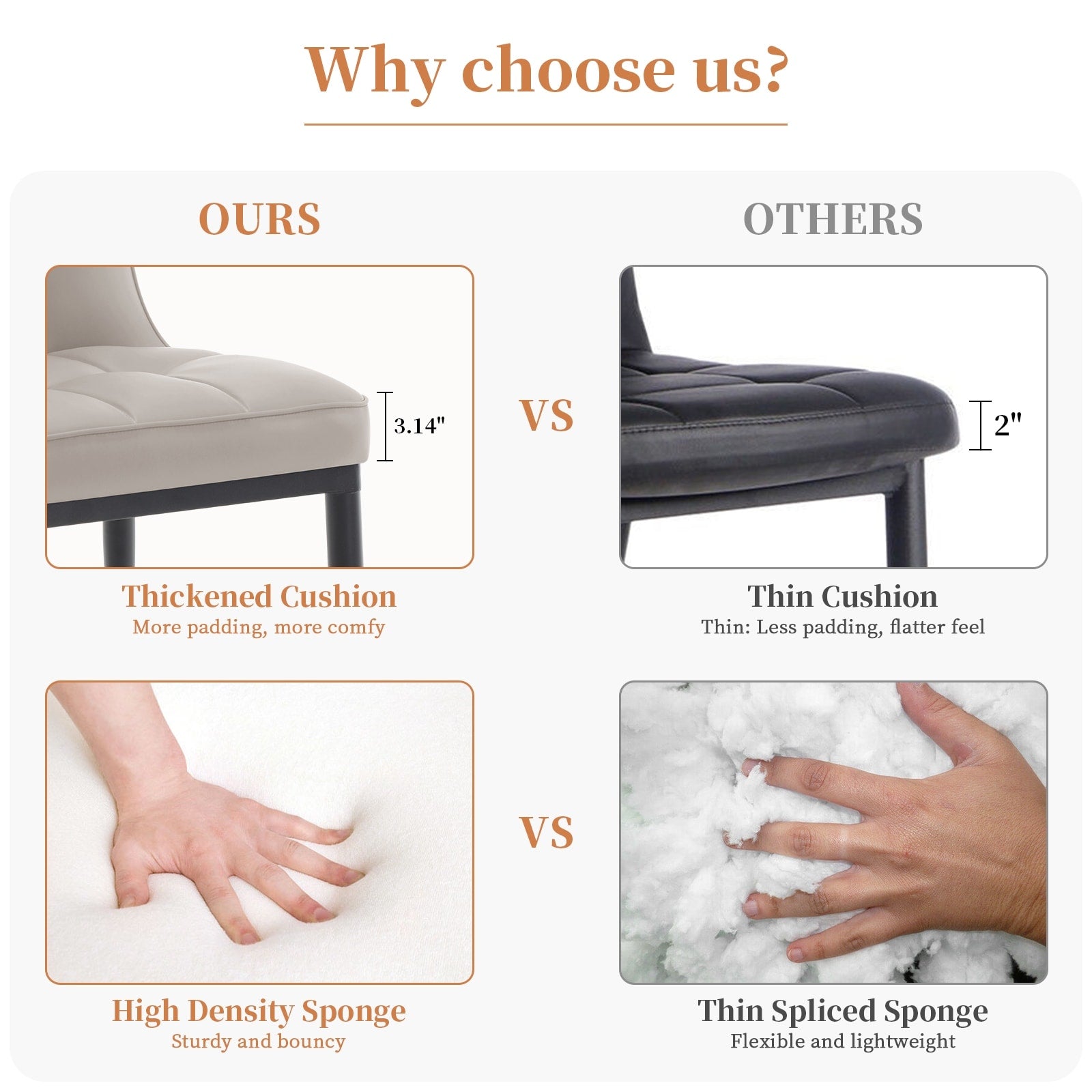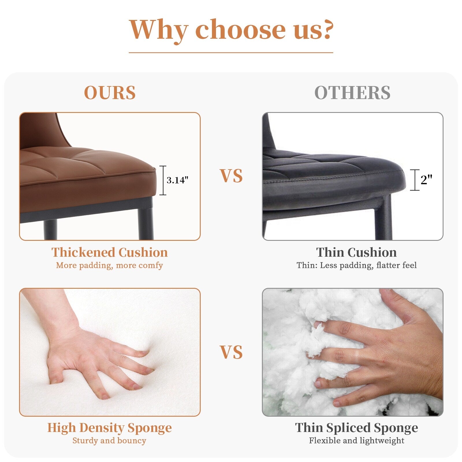 Upgrade your dining area with these elegant Contemporary Faux Leather Upholstered Dining Chairs. Their smooth and simple streamlines add a touch of sophistication to your space, while the comfortable high-rebound sponge padded seat and high-back design make them perfect for extended sitting. Featuring premium PU leather that is waterproof, oil and dirt resistant, these dining side chairs are easy to clean and maintain. The sturdy integral metal frame can hold up to 440lbs, ensuring stability and durability. Perfect for any decor, whether it's your home, office or restaurant!