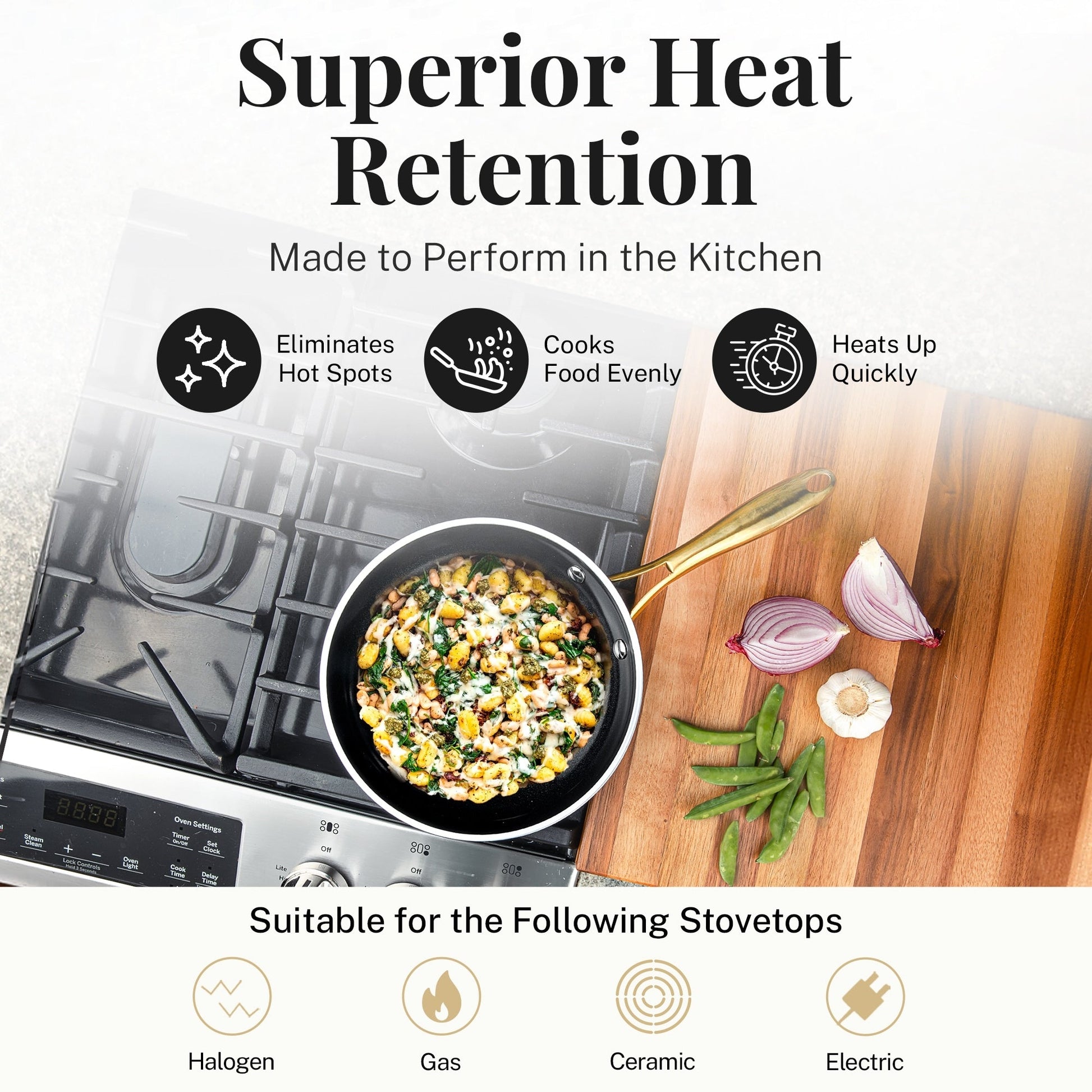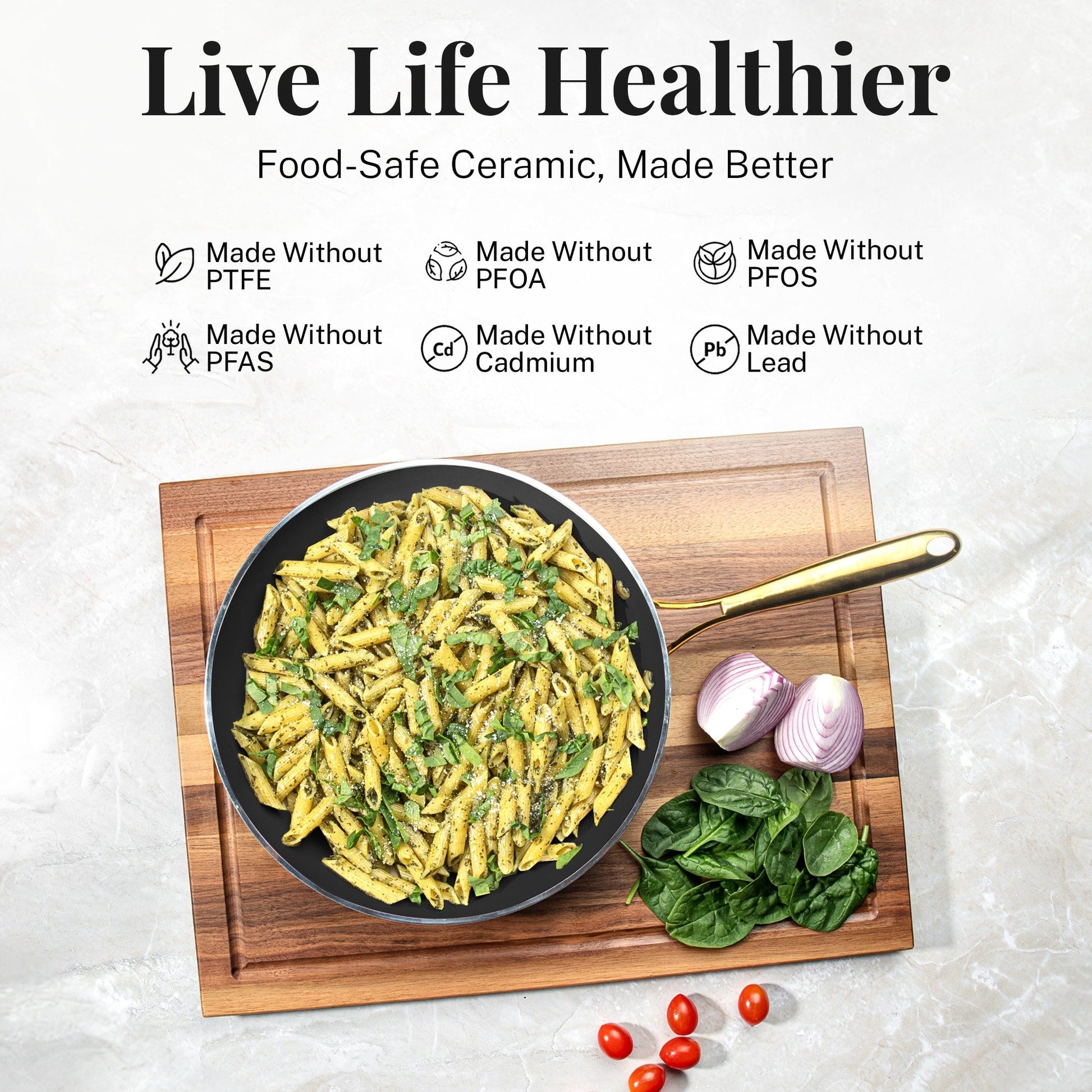 - Ultra Ceramic Nonstick Coating: Features a double-coated ultra nonstick ceramic surface for easy food release, healthier cooking with minimal oil or butter, and effortless cleanup.