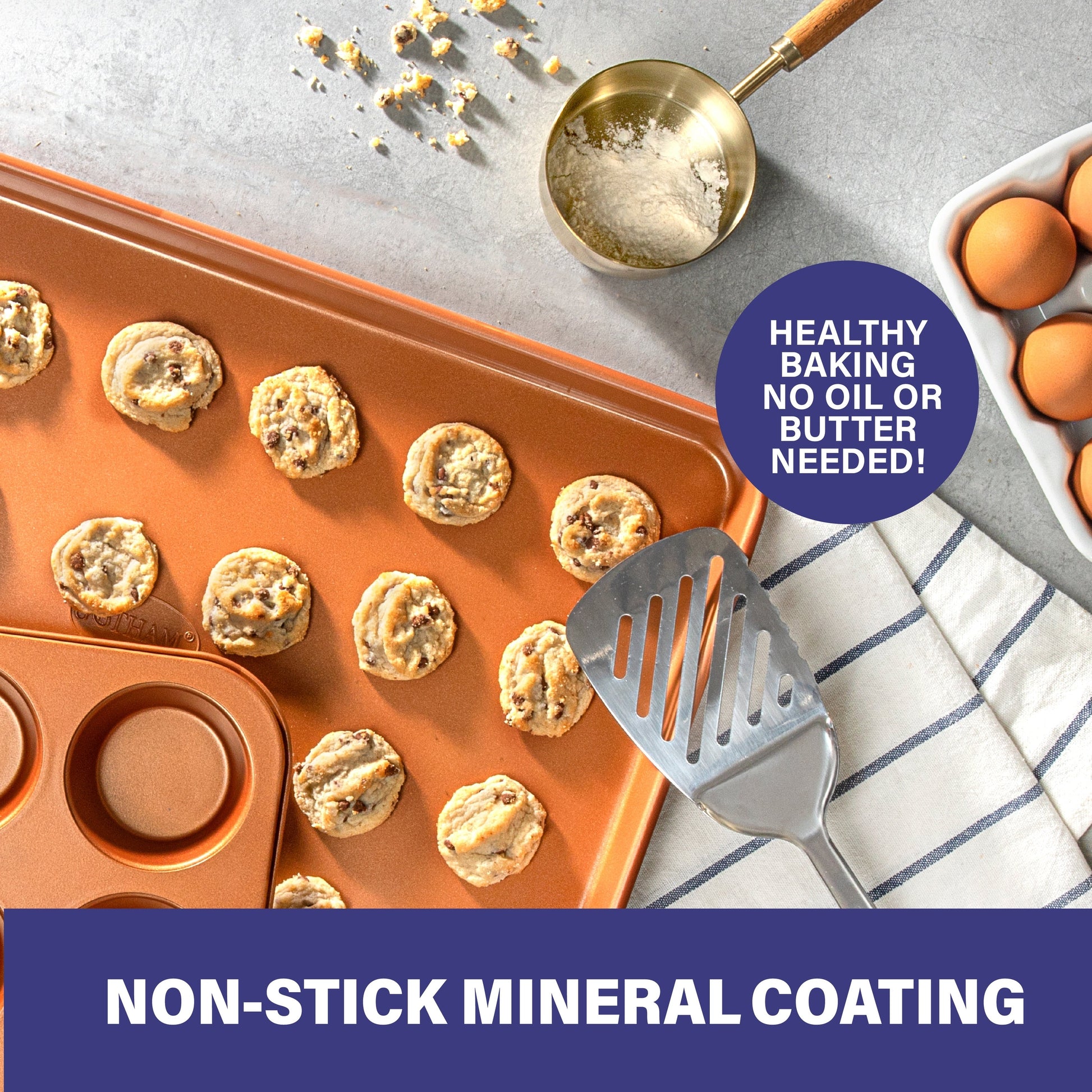 Upgrade your kitchen with Gotham Steel Pro's 20-Piece Hard Anodized Cookware and Bakeware Premium Cookware Set. This comprehensive set includes skillets, fry pans, saucepans with lids, stock pots, a deep fry basket, and a complete bakeware collection with muffin, square, cookie, round, and loaf pans. Featuring triple-reinforced ceramic and titanium coatings with diamond enhancement for superior nonstick performance. Durable graphite finish, oven safe up to 500°F, and dishwasher safe for easy cleanup. Compatible with gas, electric, and glass cooktops. Non-toxic and free from PFOA, PTFE, and PFOS, perfect for home cooks seeking quality and versatility.