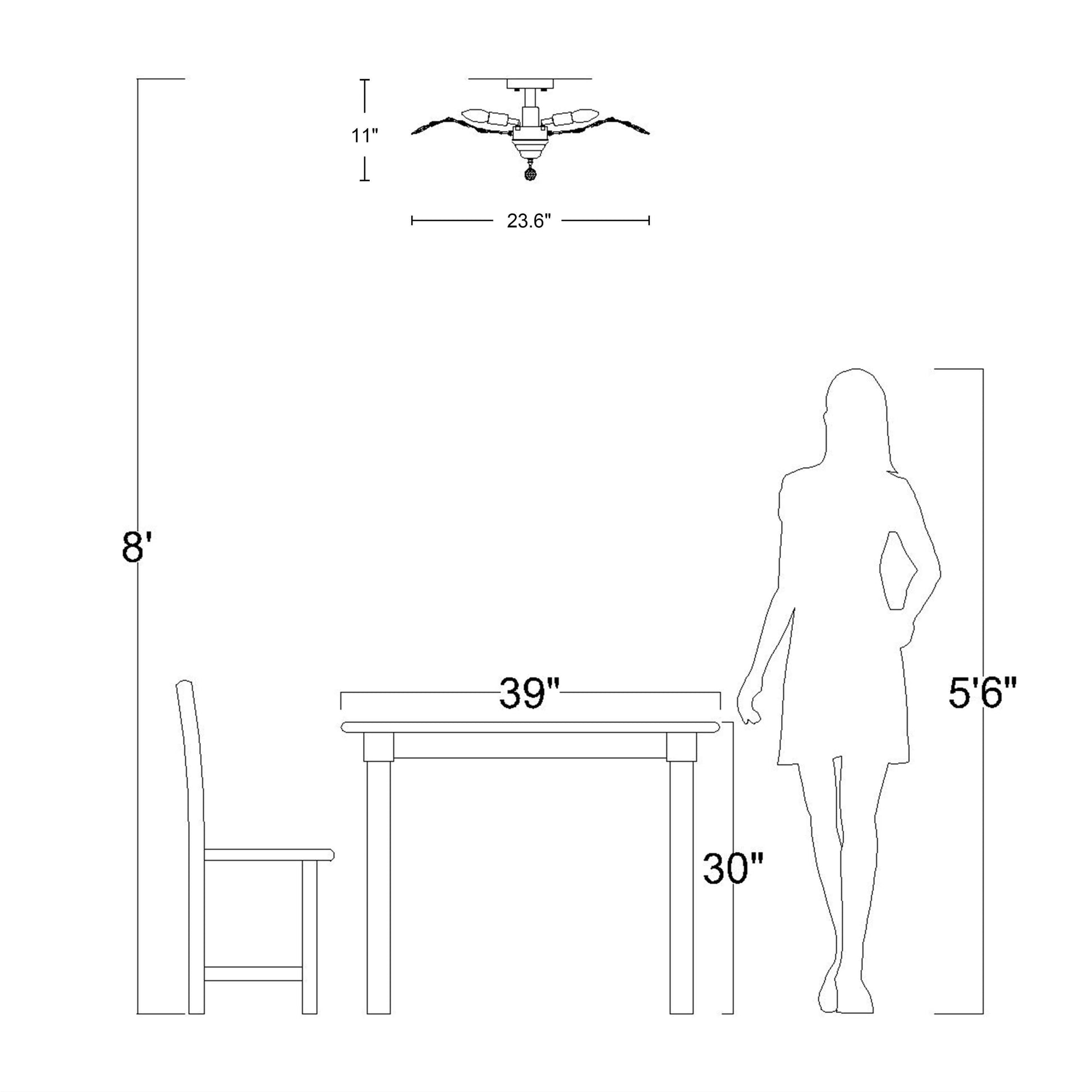 - Requires four 60-watt bulbs (not included) with E12 base.