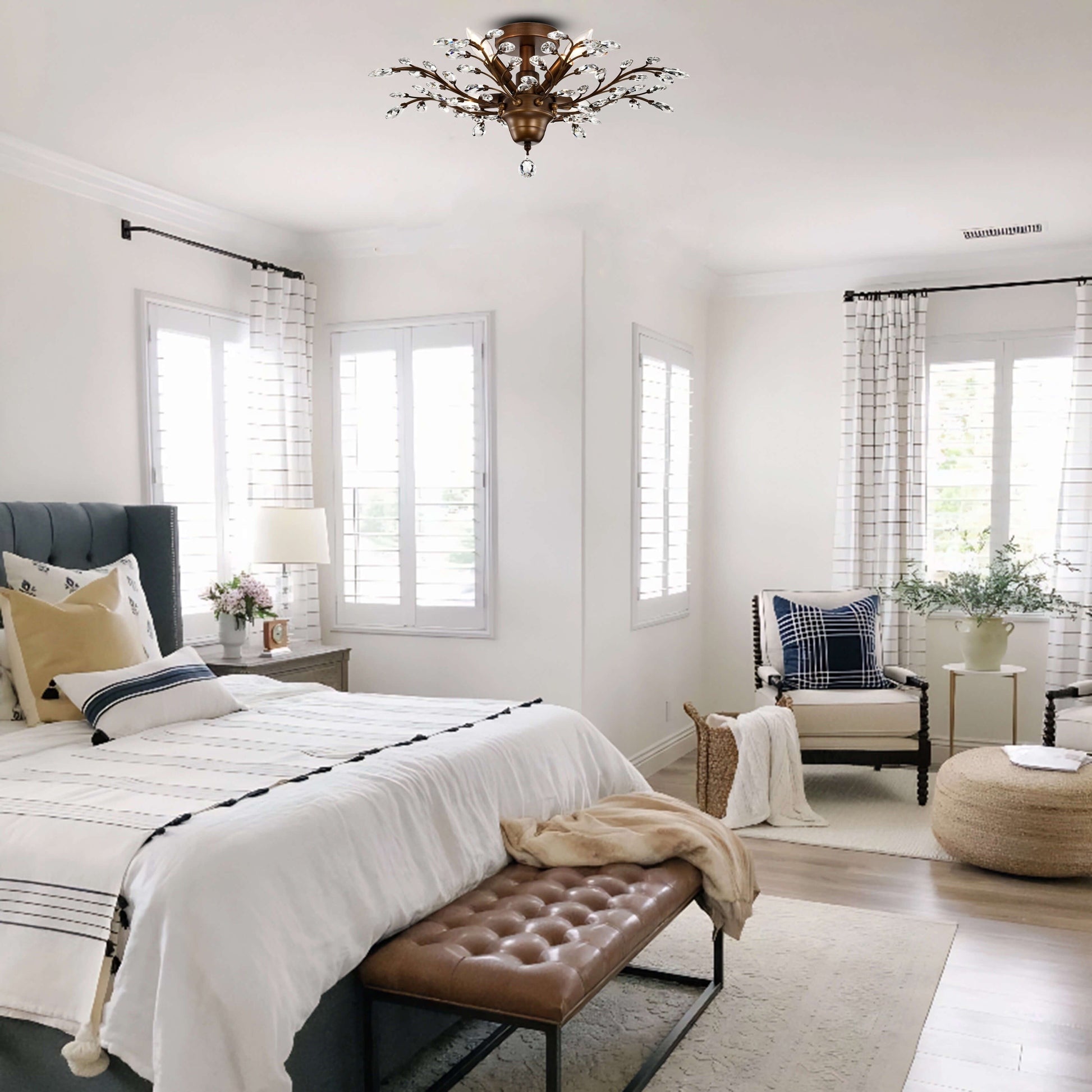 Add a touch of elegance to any room with the Holly 4-light Crystal Leaves Flush Mount. The finish and clear crystal leaves exude quality craftsmanship and style. Measuring 23.6 inches in diameter and 11 inches in height, this indoor fixture requires four 60-watt bulbs (not included) and is perfect for adding brightness to any living space.