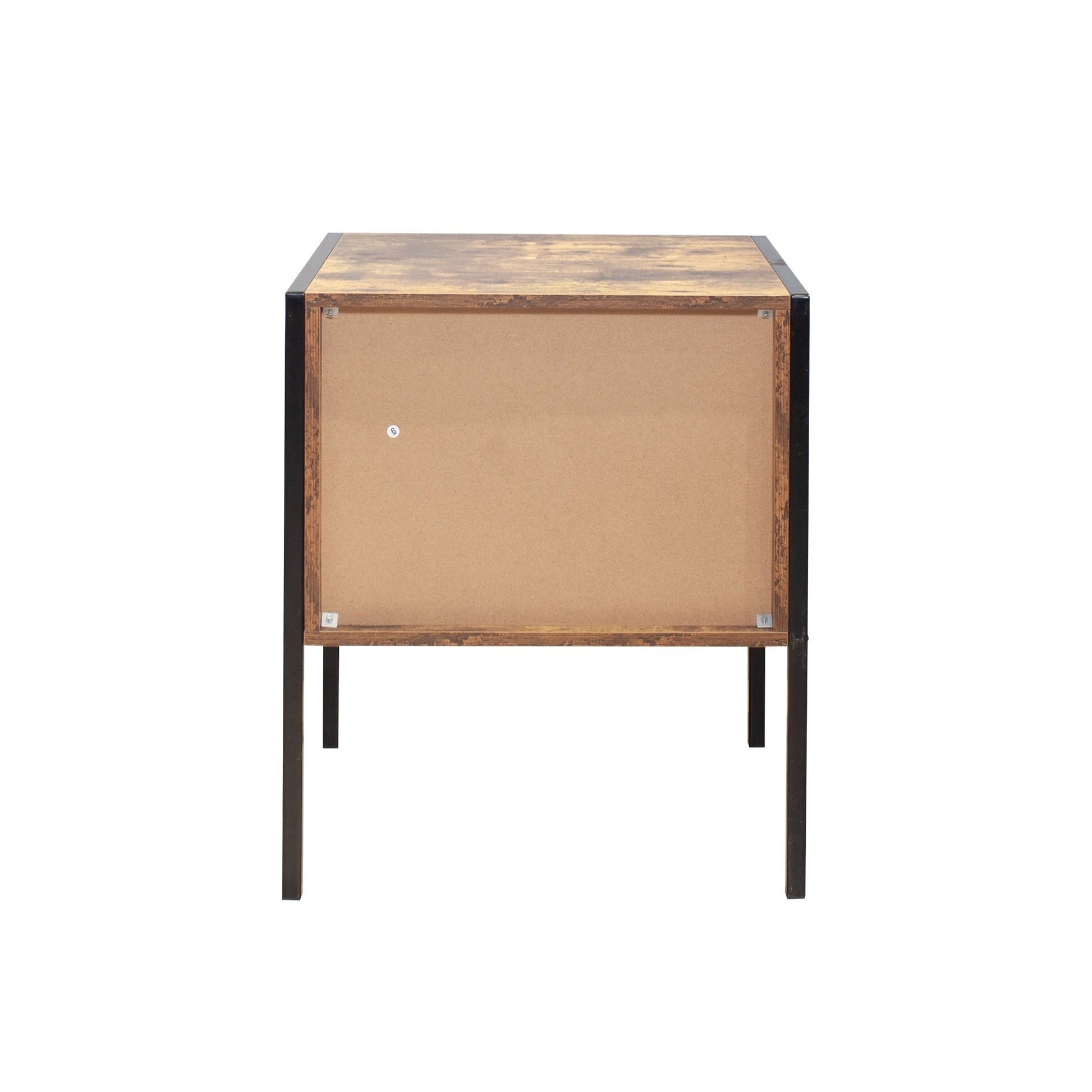 Industrial Style: Rustic brown and black color add a classic, simple,cool feeling to your room and will coordinate well with many decorating schemes. All elements makes it a great piece of reliable and elegant furniture in your collection.Measure 16.93'W*15.75'D*19.69'H, 17.86 LBS.; Made of high quality particleboard and durable MDF with black metal tube frame; 1 drawer with metal handles .Load Capacity: 40lbs;This chest offers sufficient space to display your book,artware, water,lamp and more on the top and store your clothes, accessories etc in the drawers, an open shelf is suitable for placing frequently-used items.Easy to Assemble & Clean: Assembly instruction is provided for you to follow step by step and you can wipe off dirt with wet cloth.Notice: *The pictures' color and actual product may be slightly different owing to different monitors in each computer/mobile phone. *Please keep small parts out of reach of children. *Always use on a level, even surface. *It is recommended that two people handle and assemble the item.