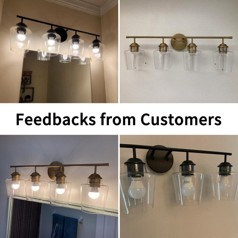 KAWOTI 4-Light Dimmable Metal Bathroom Vanity Light with Glass Shade