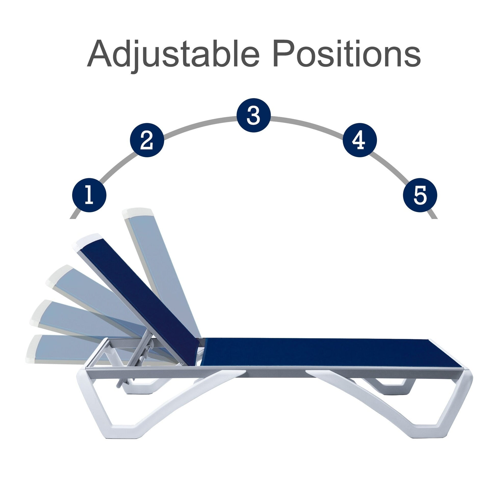 Kozyard Alan Full Flat Aluminum and Polypropylene Resin Legs Patio Reclining Adjustable Chaise Lounge