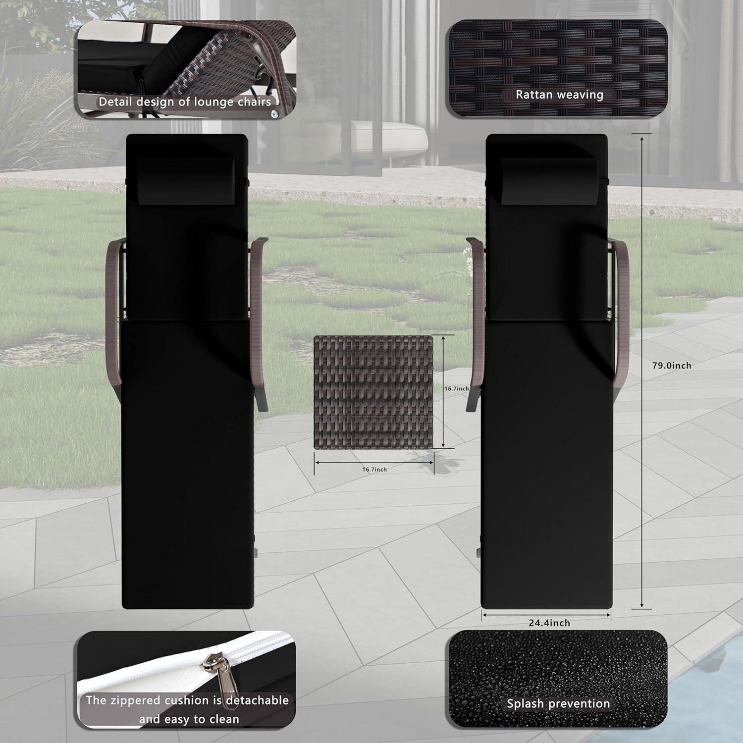 New version, on the basis of the folding chaise lounge 3-piece set, we have designed a rattan chaise lounge 3-piece set with armrests.