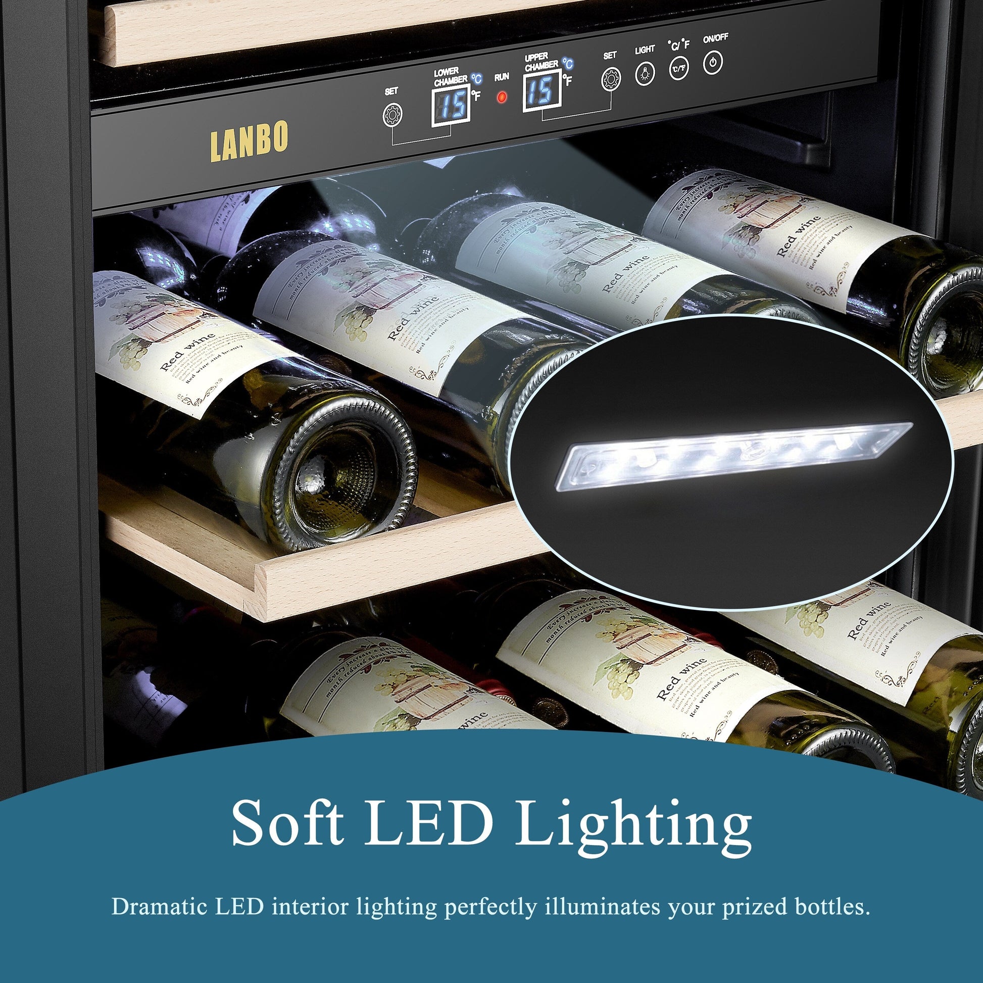 Lanbo 20-Inch 64 Bottle Dual Zone Freestanding Wine Cooler, Stainless Steel Trimmed Glass Door With Two Safety Lock