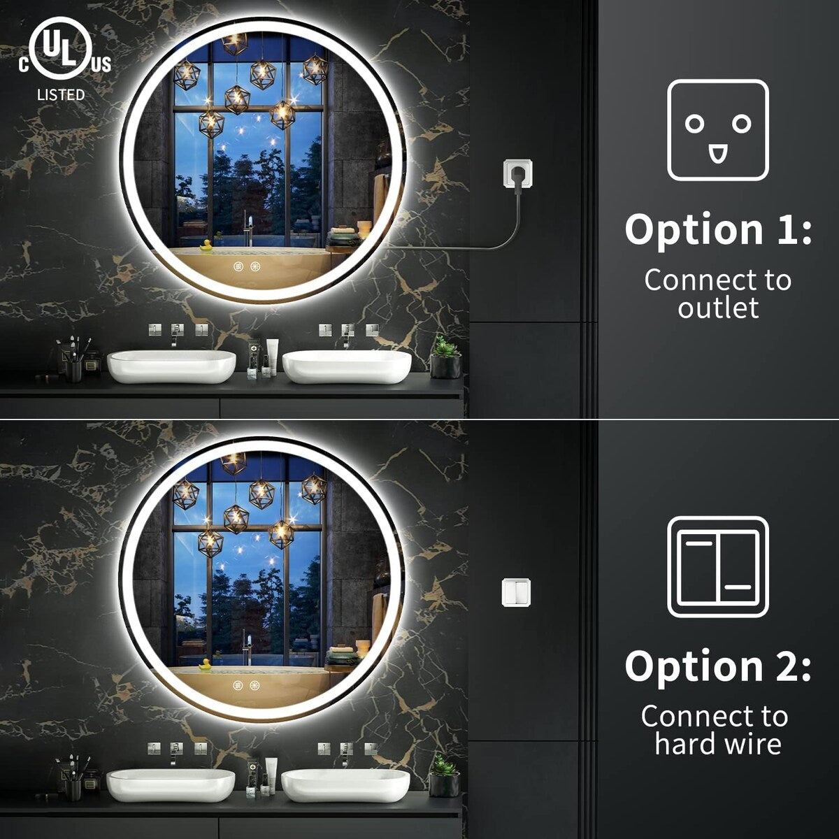 No one can resist a piece of furniture (vanity mirror with LED light) that makes bathrooms, bedrooms, and living rooms more practical and unique. This bathroom mirror with a backlit and front light, which can be adjusted to 3 light temperatures and different brightness levels, allows the modern woman/man to apply make-up and skincare in ideal lighting conditions. Also, the wall-mounted mirror with light features a newly improved anti-fog system to ensure it is always clear and fog-free. The round vanity mirror can be used as a decorative mirror in an entryway, closet, or hallway.