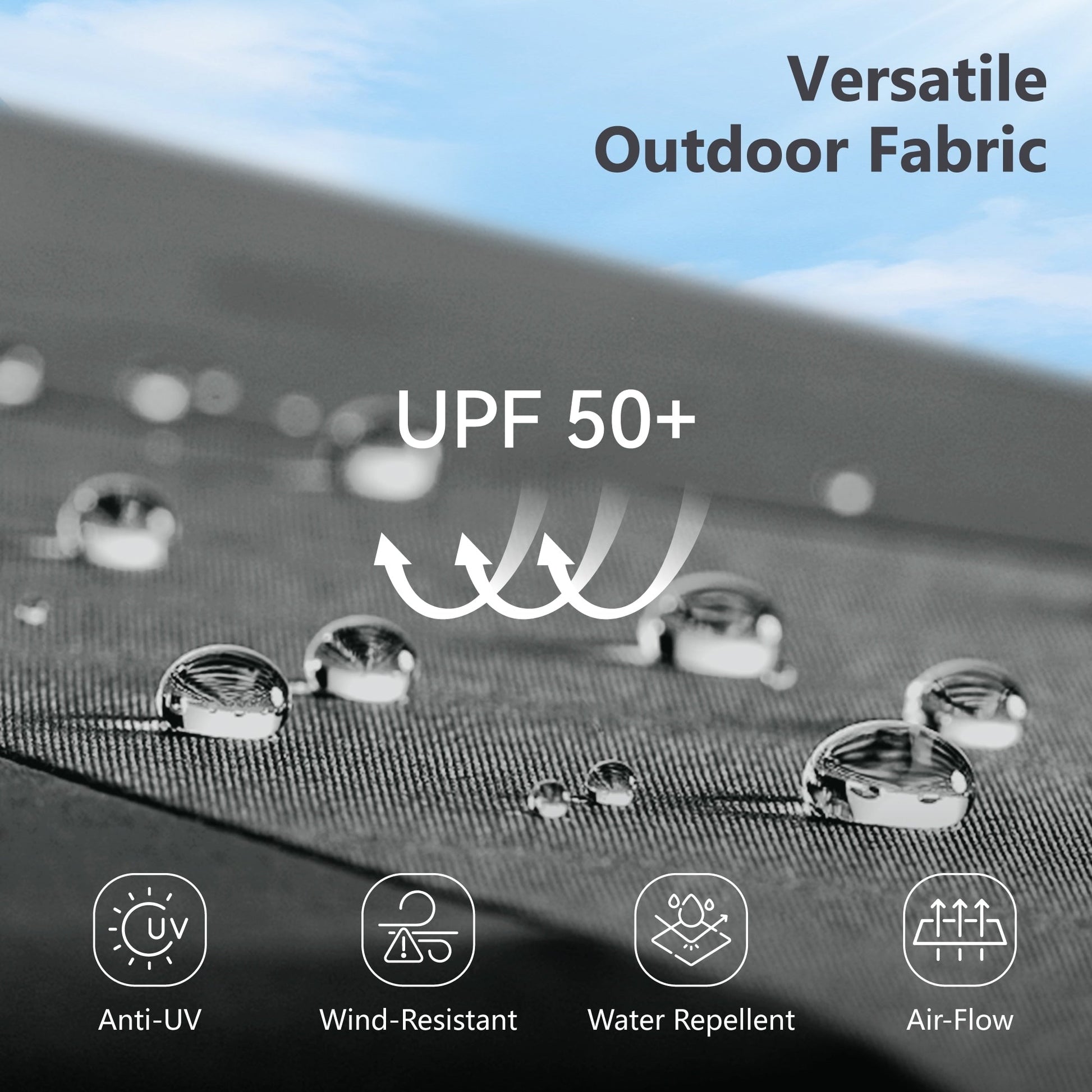 2. Made of 250g solution-dyed fabric with a PA coating for enhanced durability, waterproof, sunproof, and fade-resistant properties. The solution-dyed fabric ensures color stability for up to 3 years.