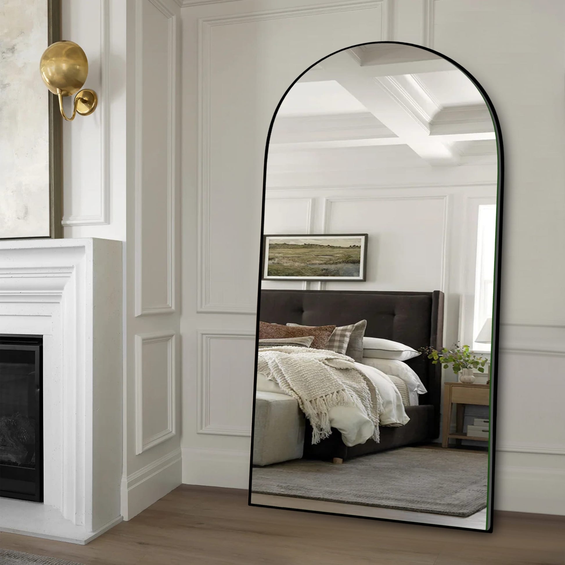Modern Arched Full-Length Wood Floor Standing Mirror