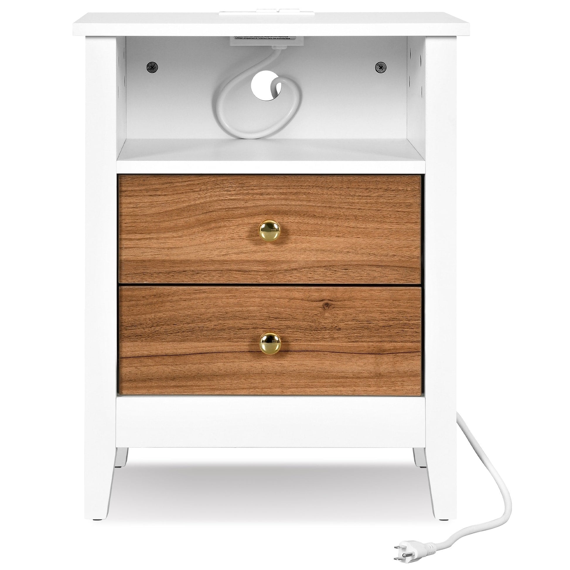 Nightstand Set of 2 with Charging Station End Side Table with 2 Drawers with USB Ports and Outlets Bedside Bed