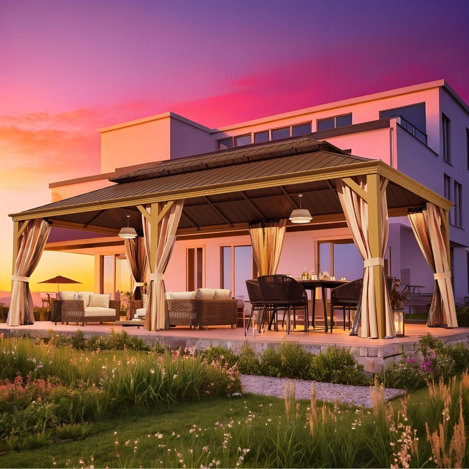 The frame of the rust-proof hardtop gazebo is made of aluminum with a strong powder coating that is very stable and sturdy. All materials are durable and also very easy to maintain. The patio gazebo will certainly become a comfortable space for you.