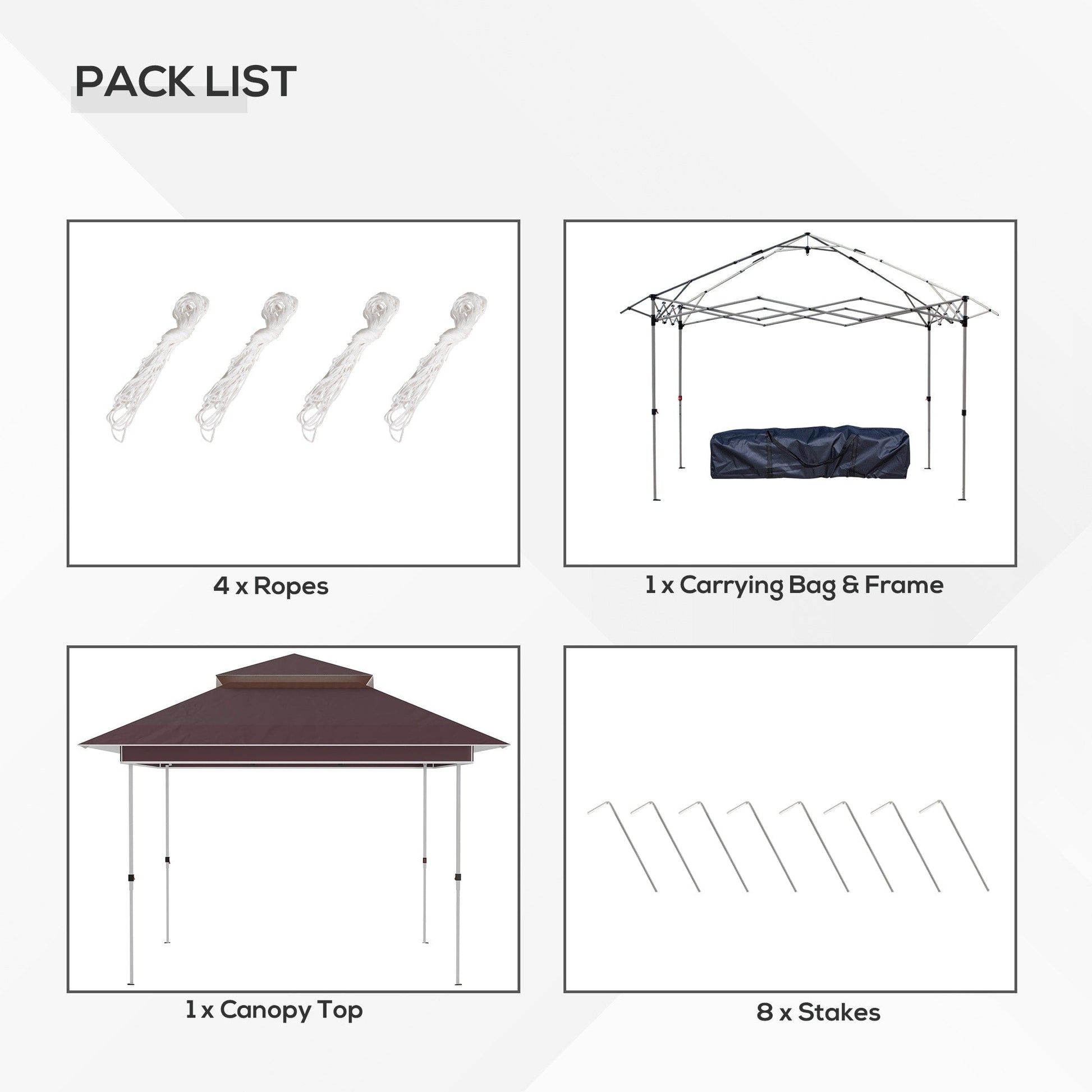 Pop-in pop-up and pop-out with Outsunny. This instant canopy sets up fast and can provide spacious protection from the sun. Use the breathable mesh sidewalls to provide a comfortable sitting space. The vented top of our foldable party tent is also netted, working together with the ropes and support stakes; it provides a more stable structure helping it withstand winds. When you're done, push down the tent and walk away with the included carrying bag.