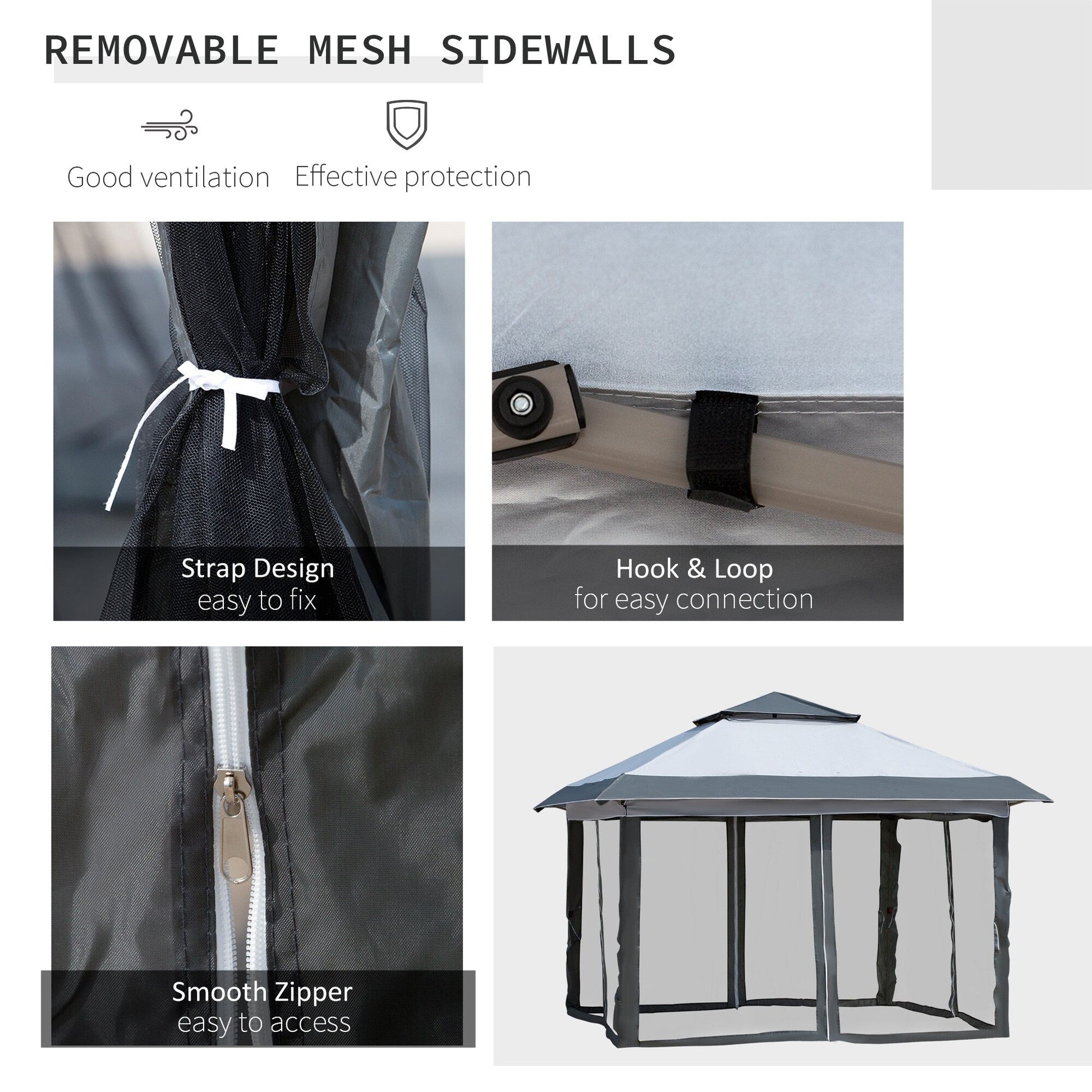 Outsunny 12' x 12' Pop Up Canopy Sun Shade Instant Tent Folding with Mesh Sidewall Netting, 3-Level Adjustable Height