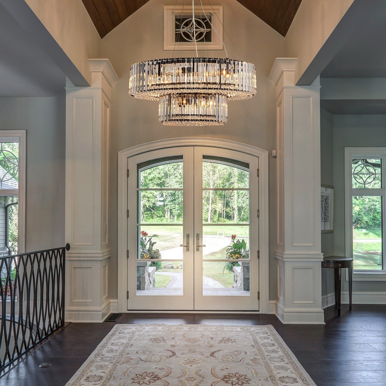 Elevate your space with the modern elegance of the OYIPRO Crystal Chandelier. Designed with a clear crystal drum shade and a sleek chrome, black, or gold circle frame, this chandelier blends timeless glamour with contemporary style. Available in 6-light, 8-light, or 12-light configurations, it provides warm, radiant illumination ideal for dining rooms, kitchens, living rooms, and more. The adjustable 59-inch hanging chain and sloped-ceiling-compatible canopy allow for flexible installation, while the high-quality crystal accents add a touch of luxury to any interior. Compatible with dimmable bulbs and switches, it’s perfect for setting the right ambiance in any setting.