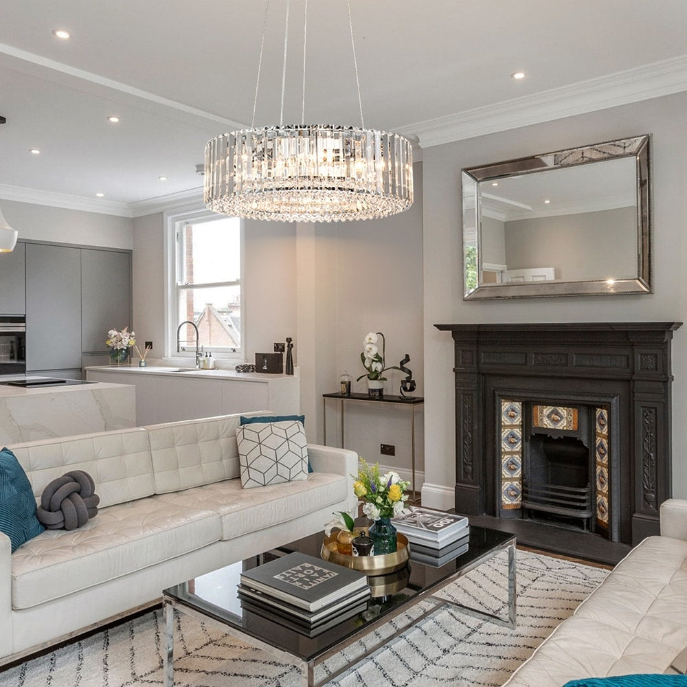 OYIPRO 6/8/12-Light Modern Round Crystal Chandelier Drum Shape Pendant Light for Kitchen Island
