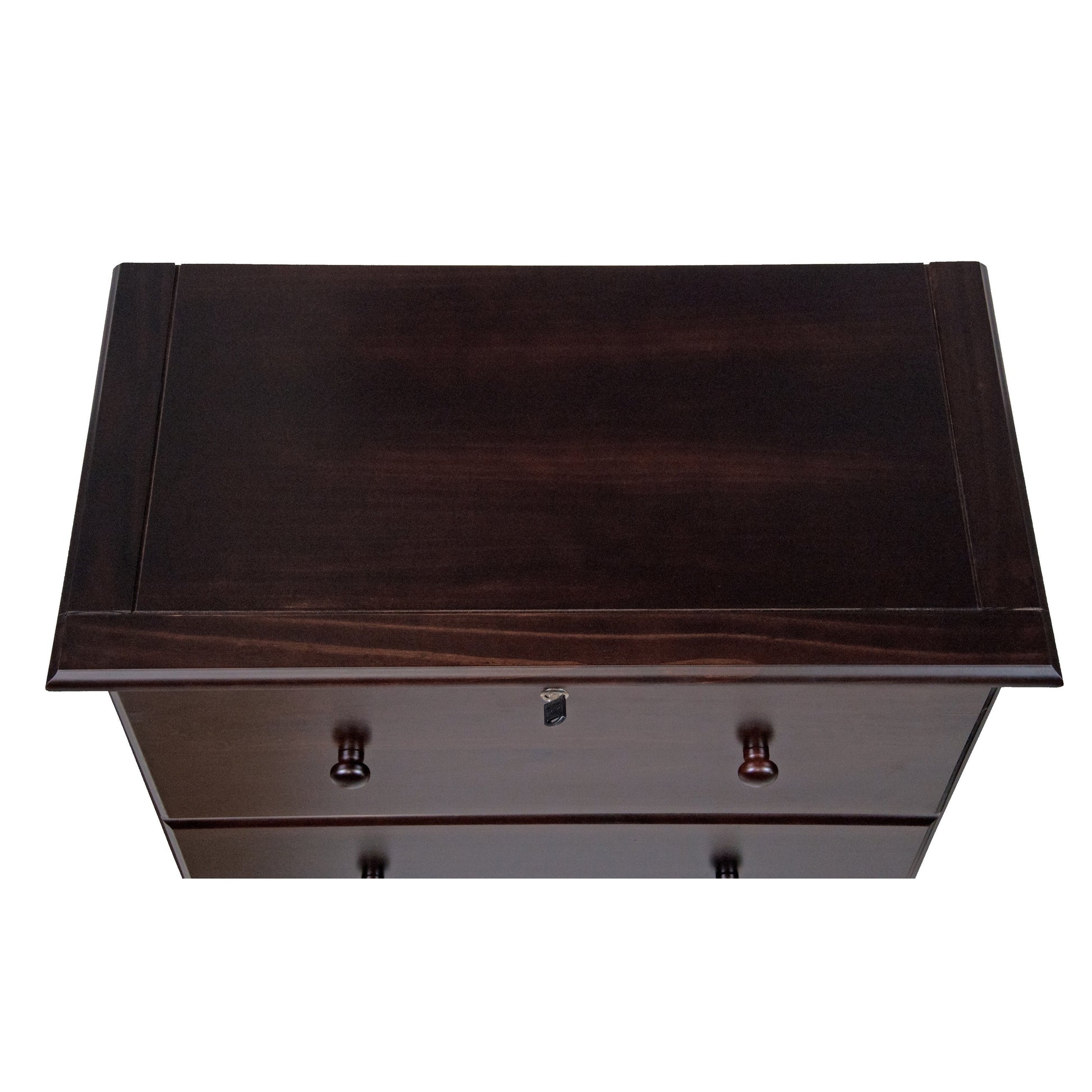 The unsurpassed beauty, elegance, and the smell of real wood is what makes this 100% solid wood 5-jumbo drawer chest stand apart from its 'engineered wood' analogues. Its ageless design will blend perfectly with any interior and seamlessly accommodate your storage requirements with its 5 jumbo drawers made of unfinished wood to showcase the raw wood grain so appealing to real wood lovers! Indispensable if you need some privacy is the lock locking the top drawer- it's not a safe, but you'll know it if someone tried to pry it open. Get this Made in Brazil giant chest today and say goodbye to your clutter! Shorter 4-jumbo drawer as well as standard 5-drawer and 6-drawer chests are available as well.