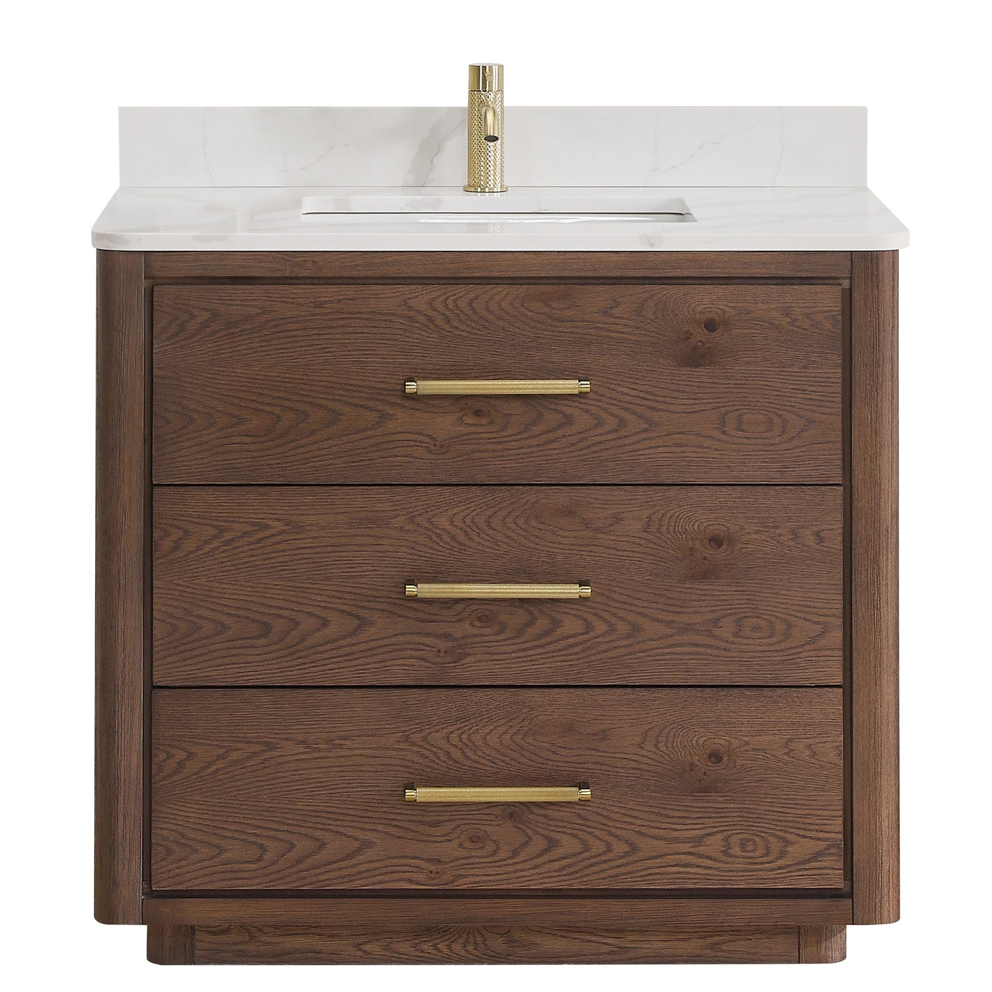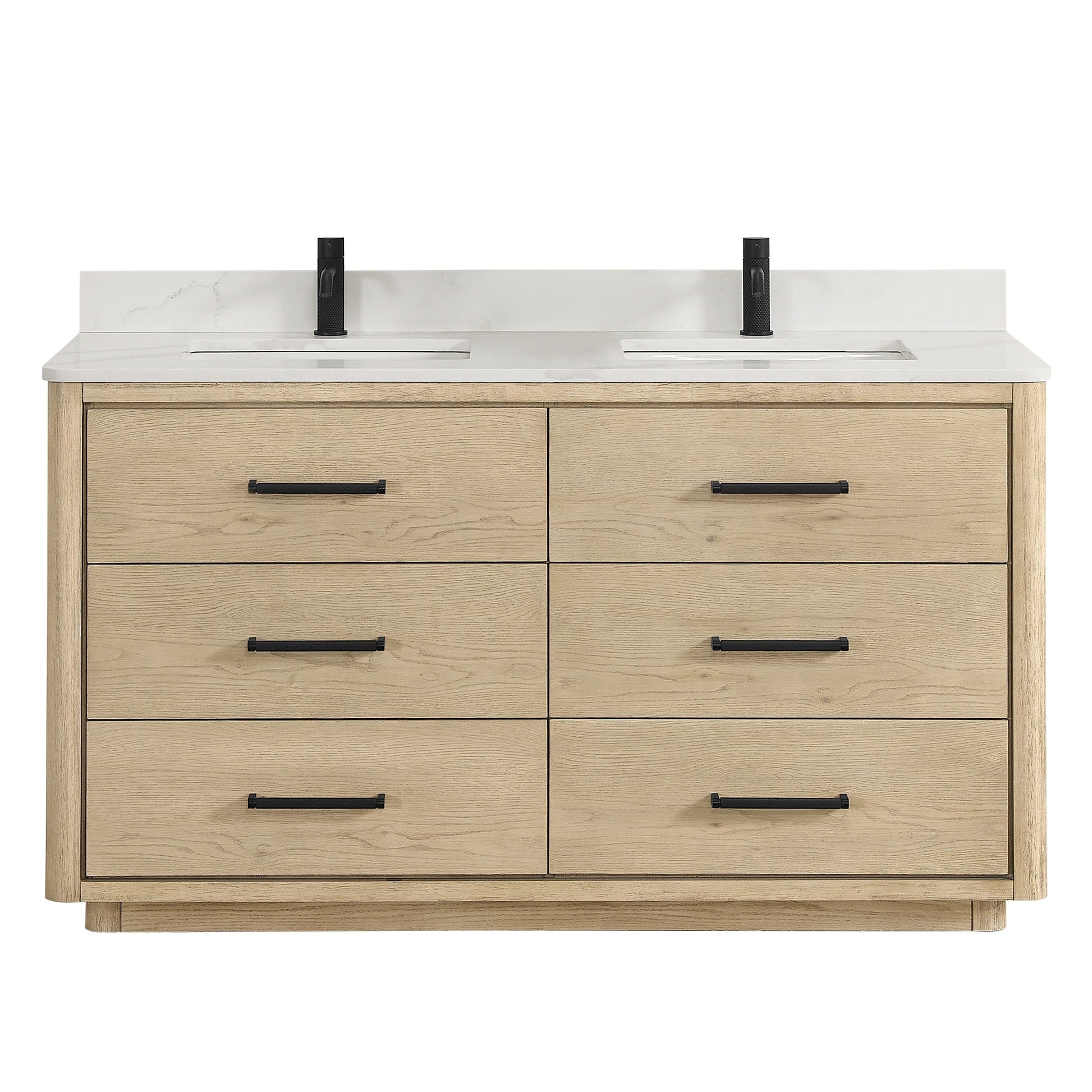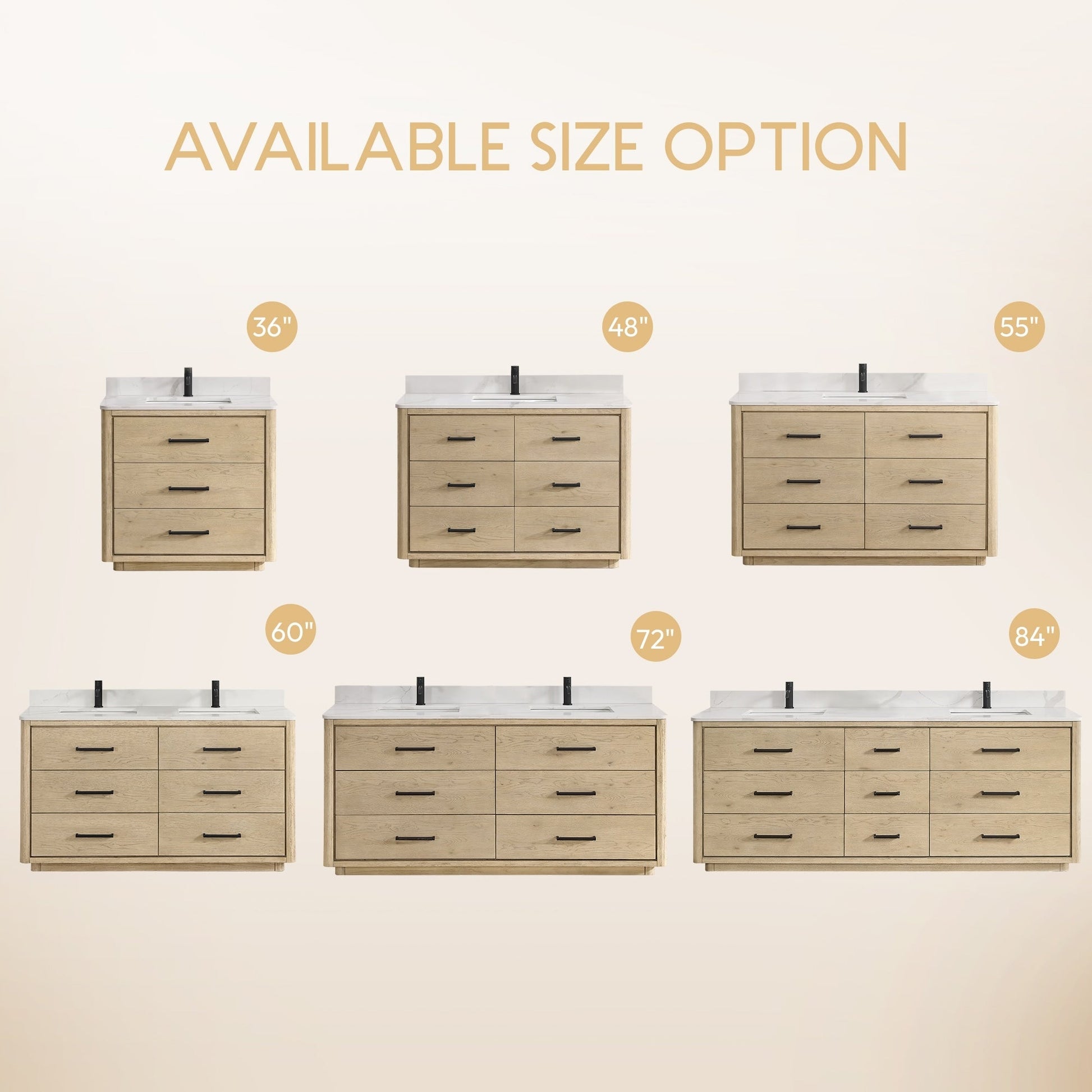 Transform your bathroom into a haven of style and sophistication with our Porto Series Freestanding Bathroom Vanity—a piece that embodies fine craftsmanship and everyday practicality. This exquisite vanity combines the textured warmth and elegance of solid oak with pristine white quartz, resulting in a look that's both inviting and visually captivating. Deep dovetail drawers with partitions allow you to keep your essentials concealed and organized.