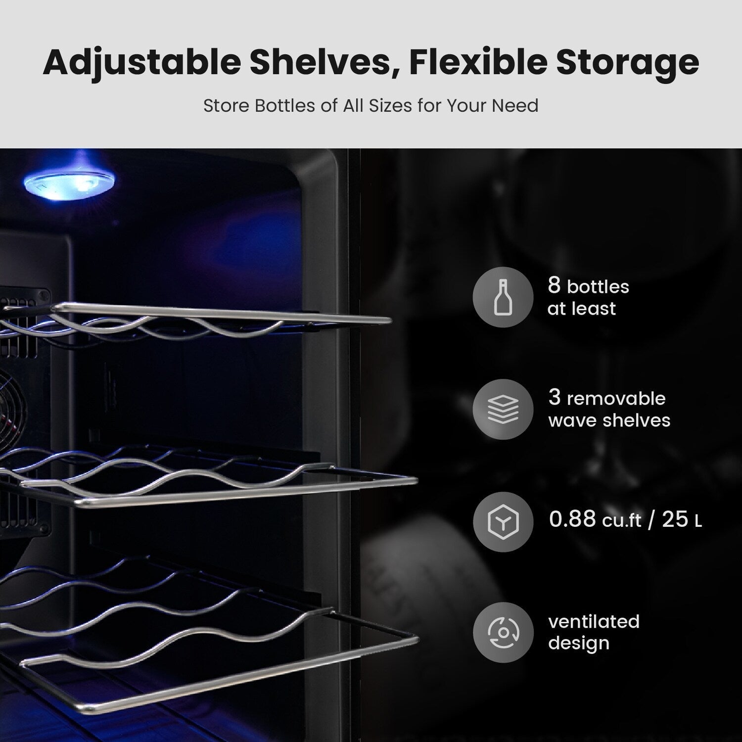 - Versatile Storage: Accommodates 8 standard 750ml Bordeaux bottles with three removable wine racks, allowing flexibility for different bottle sizes and types.